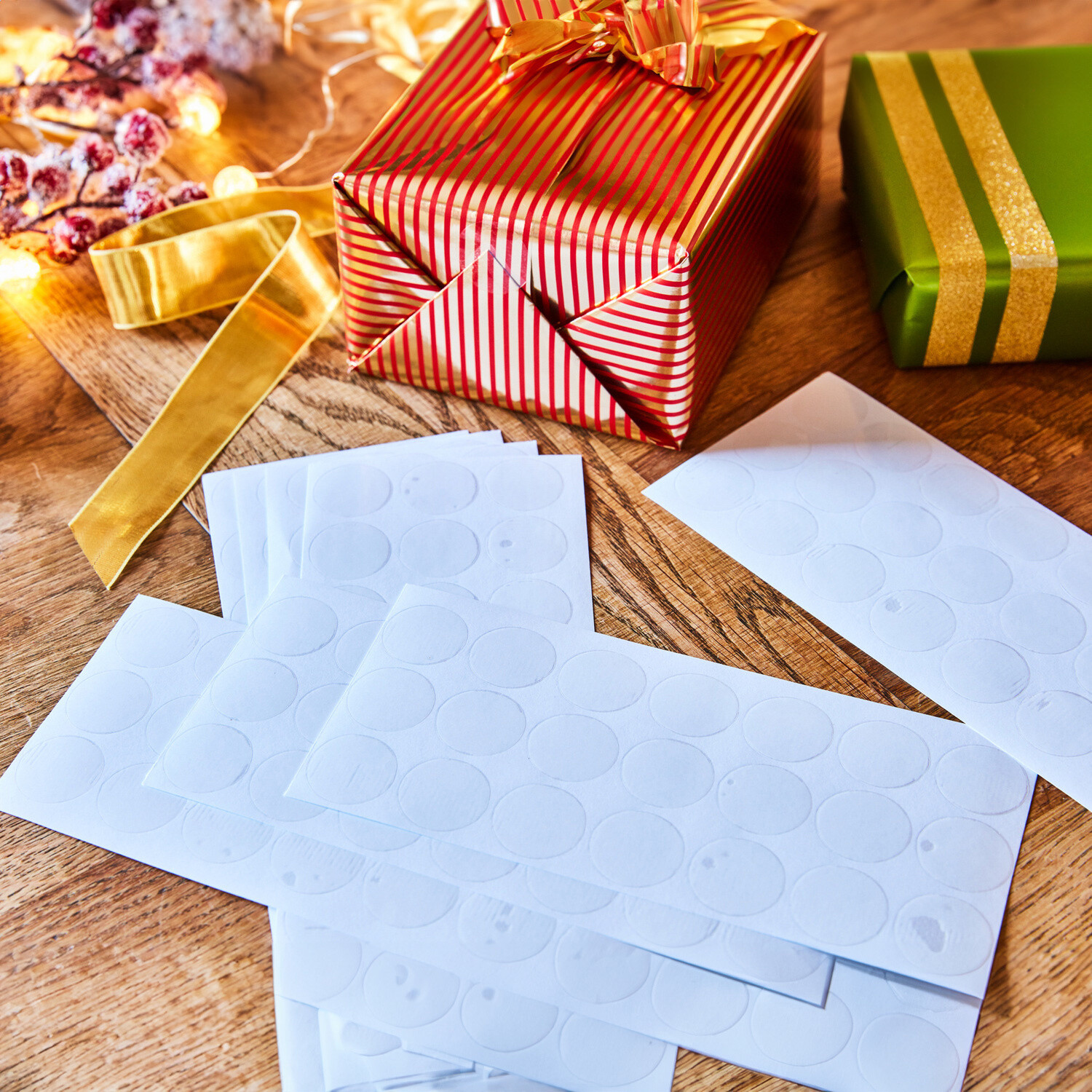 Tieto lepiace kolieska sú geniálne! Ihneď na použitie, takmer neviditeľné a univerzálne použiteľné: na balenie darčekov, zalepenie obálok, prilepenie plagátov atď.