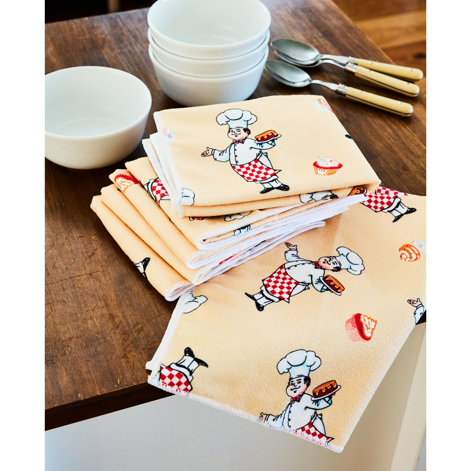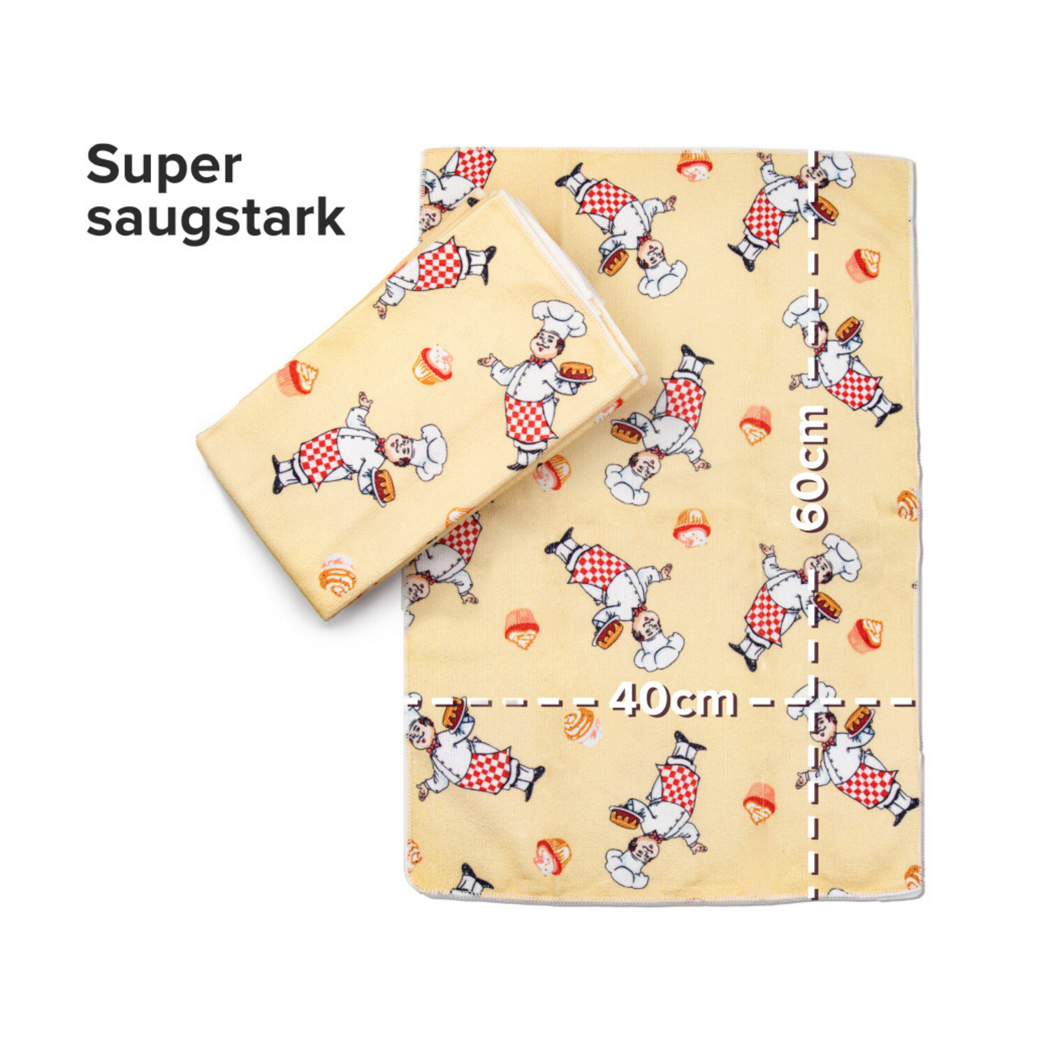 Tieto originálne utierky na riad z mikrovlákna Vás nadchnú. Kvalitné froté, ktoré nepúšťa vlákna a je extrémne savé. Veselý šéfkuchár prináša do kuchyne farby a dobrú náladu.