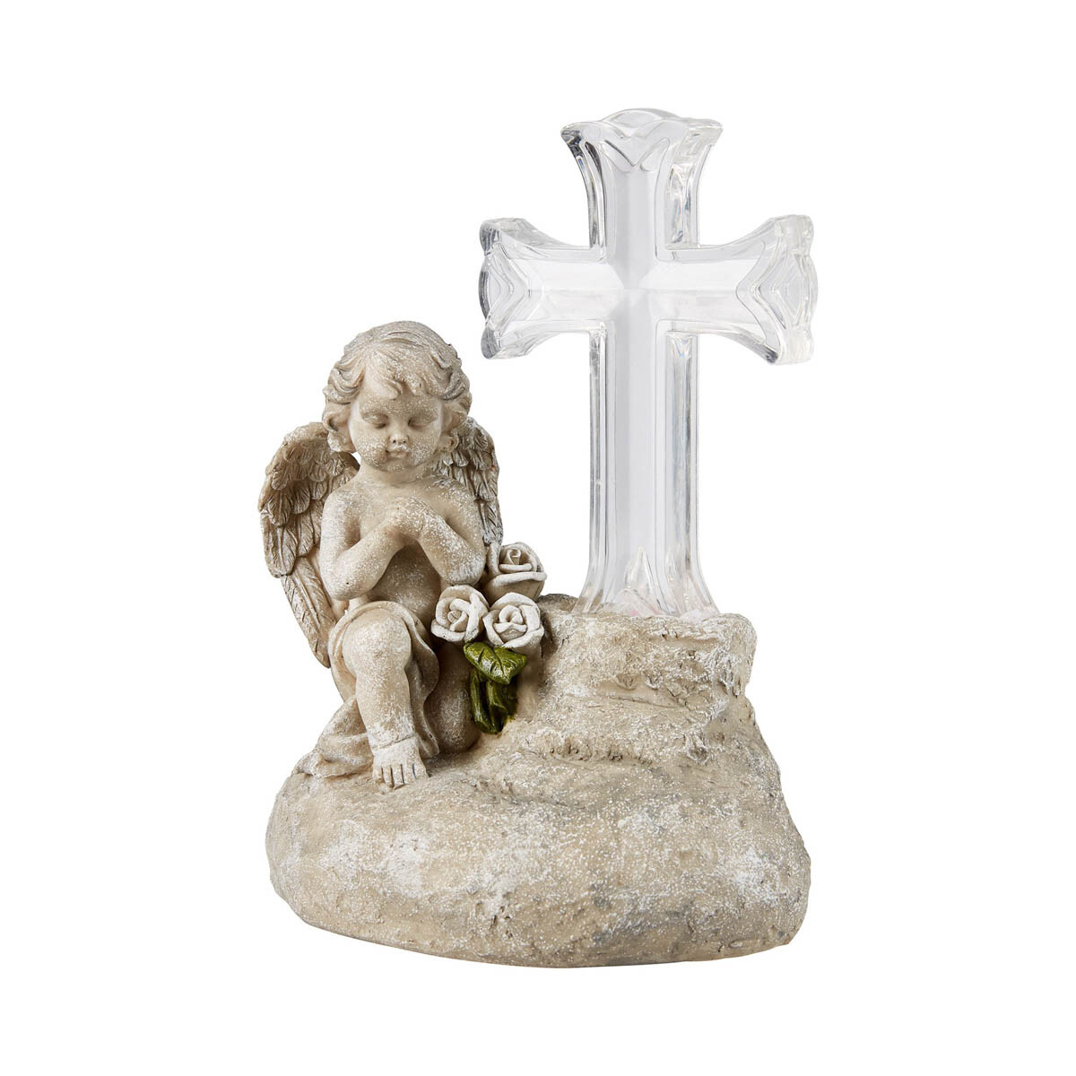 Nežný ochranca večného spánku s transparentným krížom je dôstojnú dekoráciu na hrob. Vďaka solárnemu panelu kríž s LED diódou svieti do tmy. So spínačom ON/OFF. Napájanie integrovaným solárnym panelom. Materiál: umelý kameň odolný proti poveternostným vplyvom. Rozmery: 15 x 10 x 20 cm.