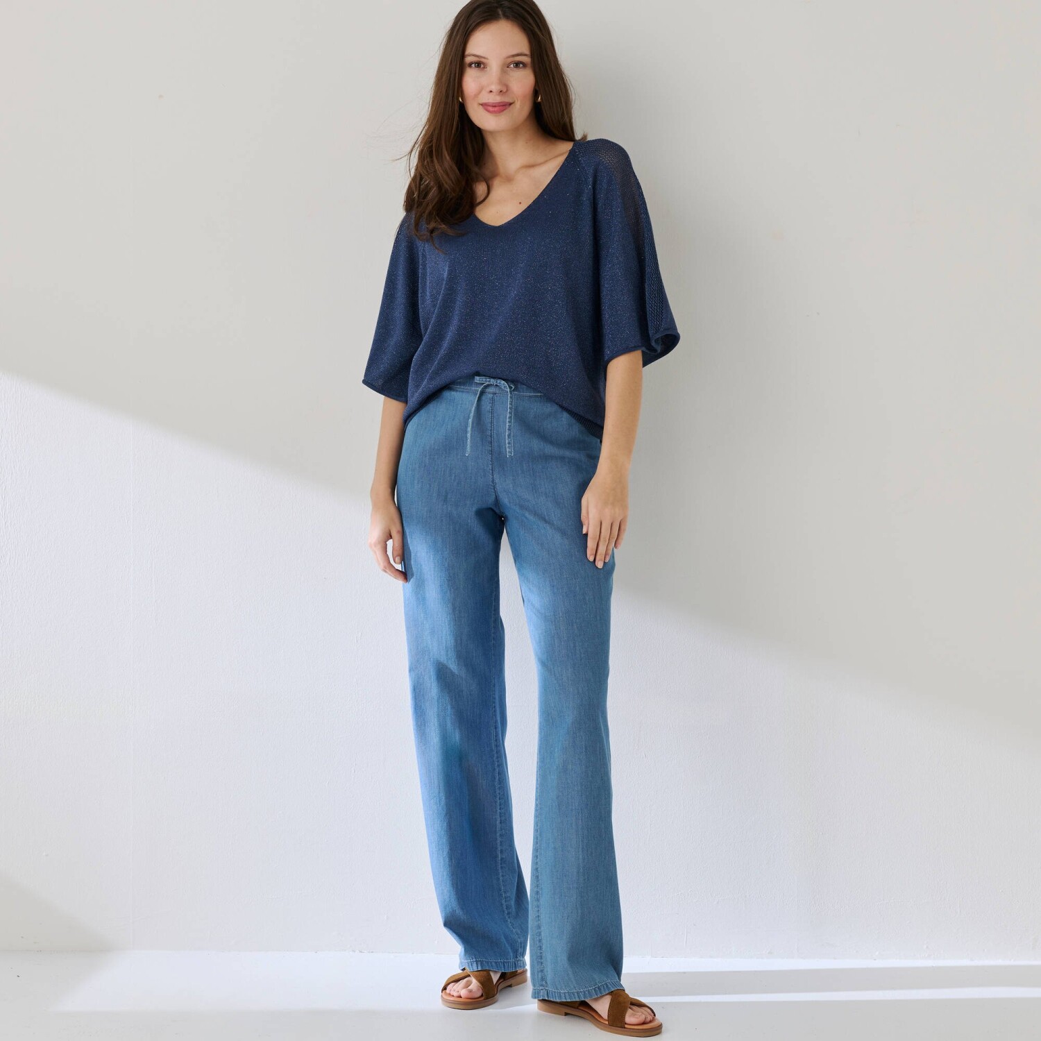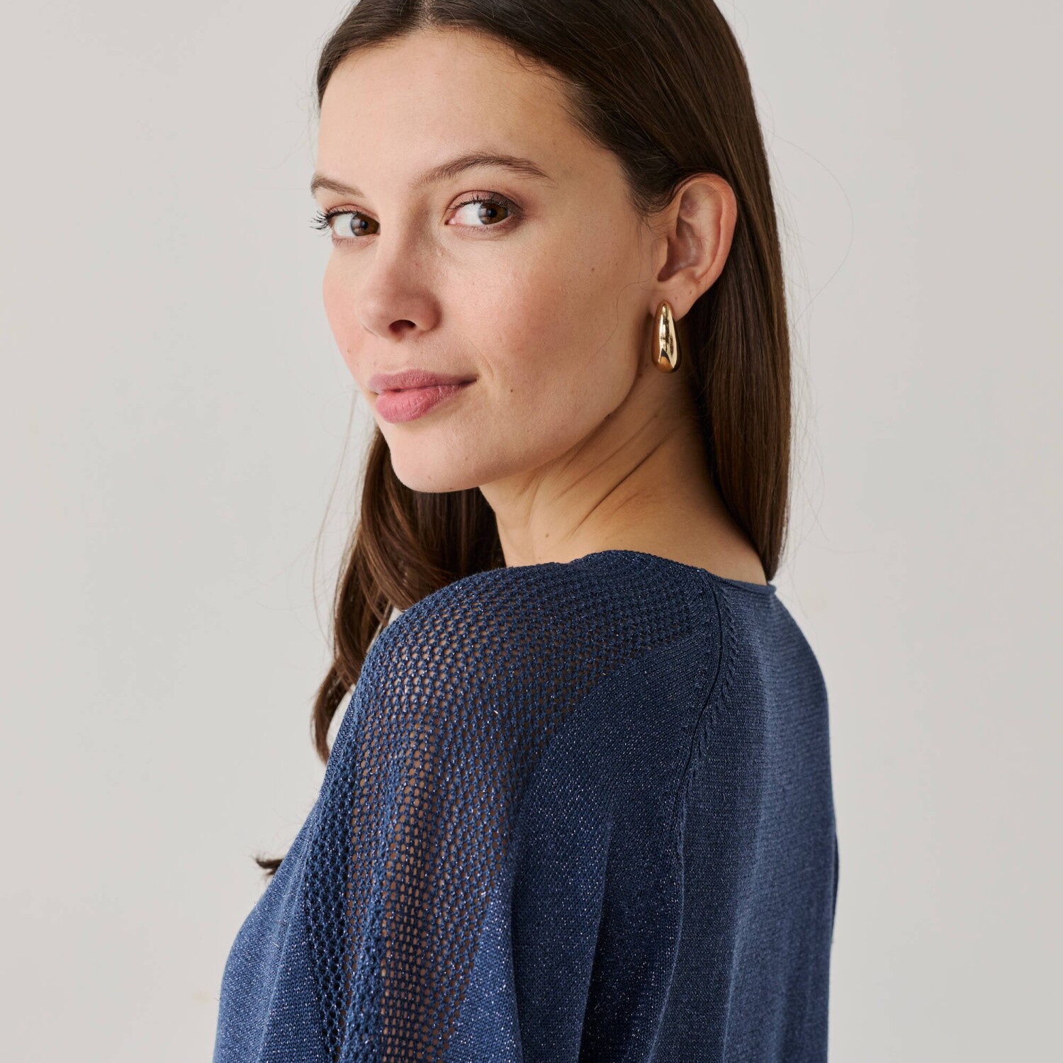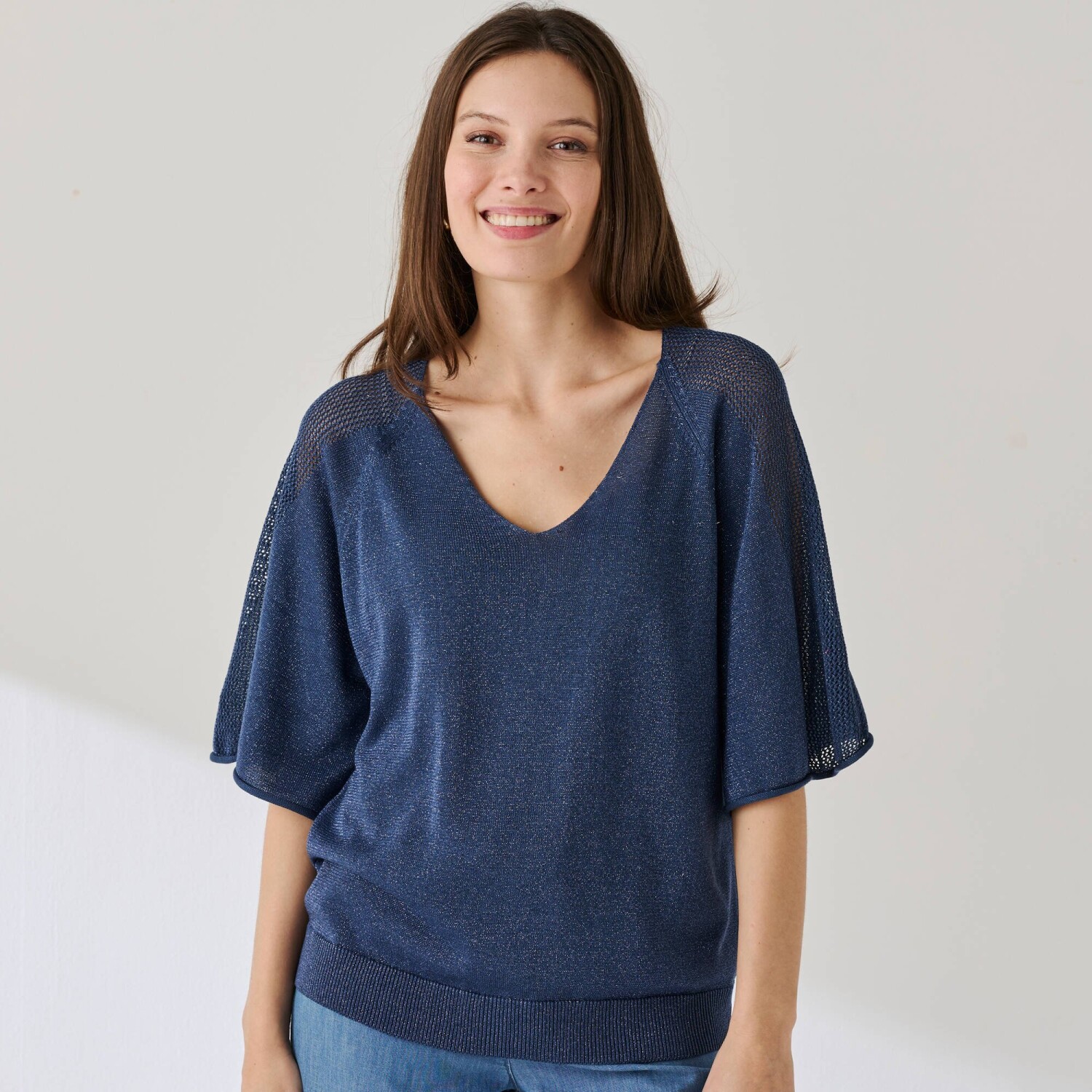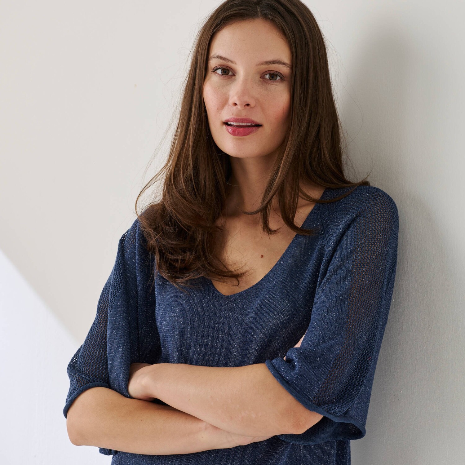 Romantická a oplývajúca štýlom, košeľová blúzka s anglickou výšivkou a volánovým výstrihom by nemala uniknúť Vašej pozornosti. Okrúhly volánový výstrih. Žabkovaná časť vpredu + nariasenie. Vzadu pod výstrihom nariasená. Celopodšívka predného dielu. 3/4 široké rukávy s pružnými manžetami. Nariasené plecia. Rovný spodný lem. Možno prať v práčke.