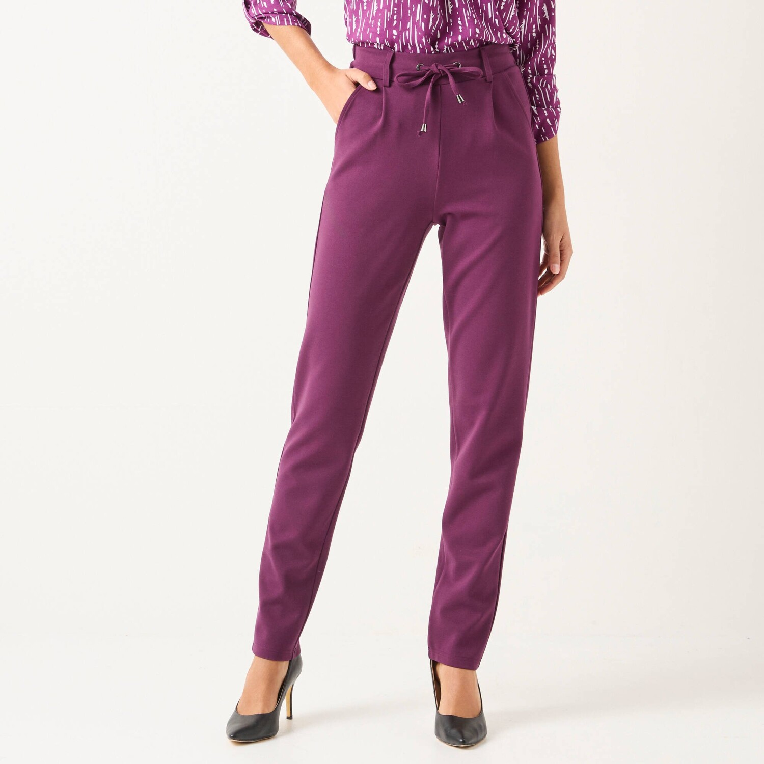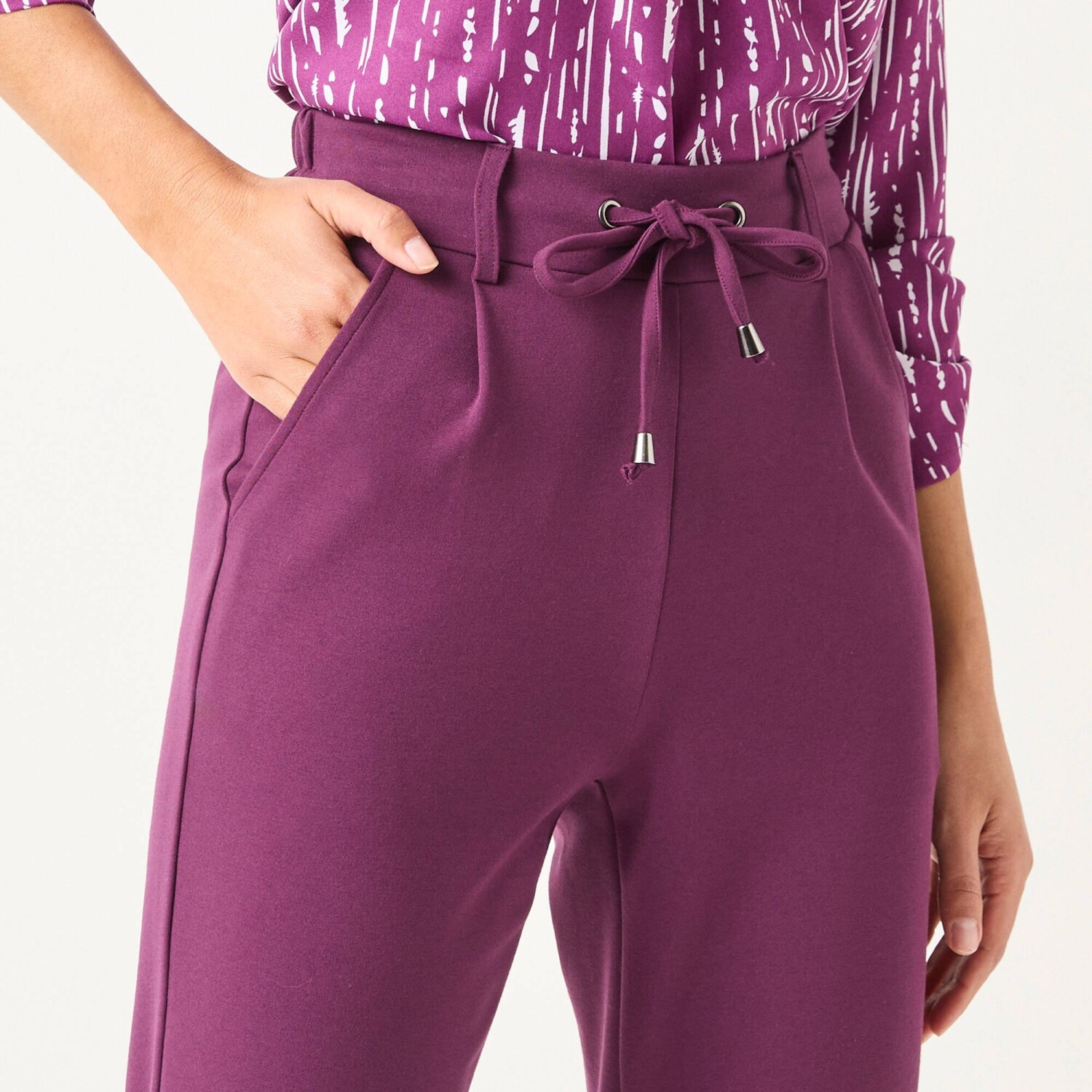 Elegantné chino nohavice z úpletu Milano sa postarajú o jedinečné pohodlie a vďaka svojej jednofarebnej verzii sa ľahko kombinujú. Bežná výška pása. Strih chino padne každej postave. Úplet Milano s nekrčivými vlastnosťami. Široký tvarovaný pás s pútkami, vpredu plochý, vzadu pružný. Vpredu 2 záševky. V páse šnúrka na stiahnutie. 2 klinové vrecká. 2 falošné vrecká s paspulou vzadu. Možno prať v práčke.