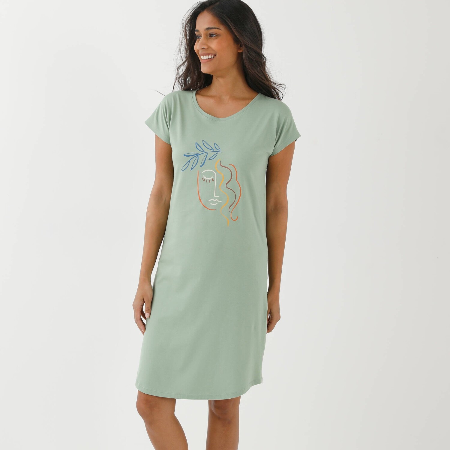 Jemná a pohodlná, nočná košeľa je zdobená potlačou sŕdc. Z bavlneného čistého džerseja. Potlač sŕdc. Vo výstrihu mašlička. V módnom strihu. Dlhé rukávy. Okrúhly kontrastný výstrih so šnúrkou na zaviazanie. Standard 100 by Oeko-Tex (n° CQ 1216/3 IFTH). Táto známka označuje textilné výrobky, ktoré boli podrobené laboratórnym testom na široké spektrum škodlivých látok a výrobok je bezpečný nad rámec platných noriem. Možno prať v práčke.