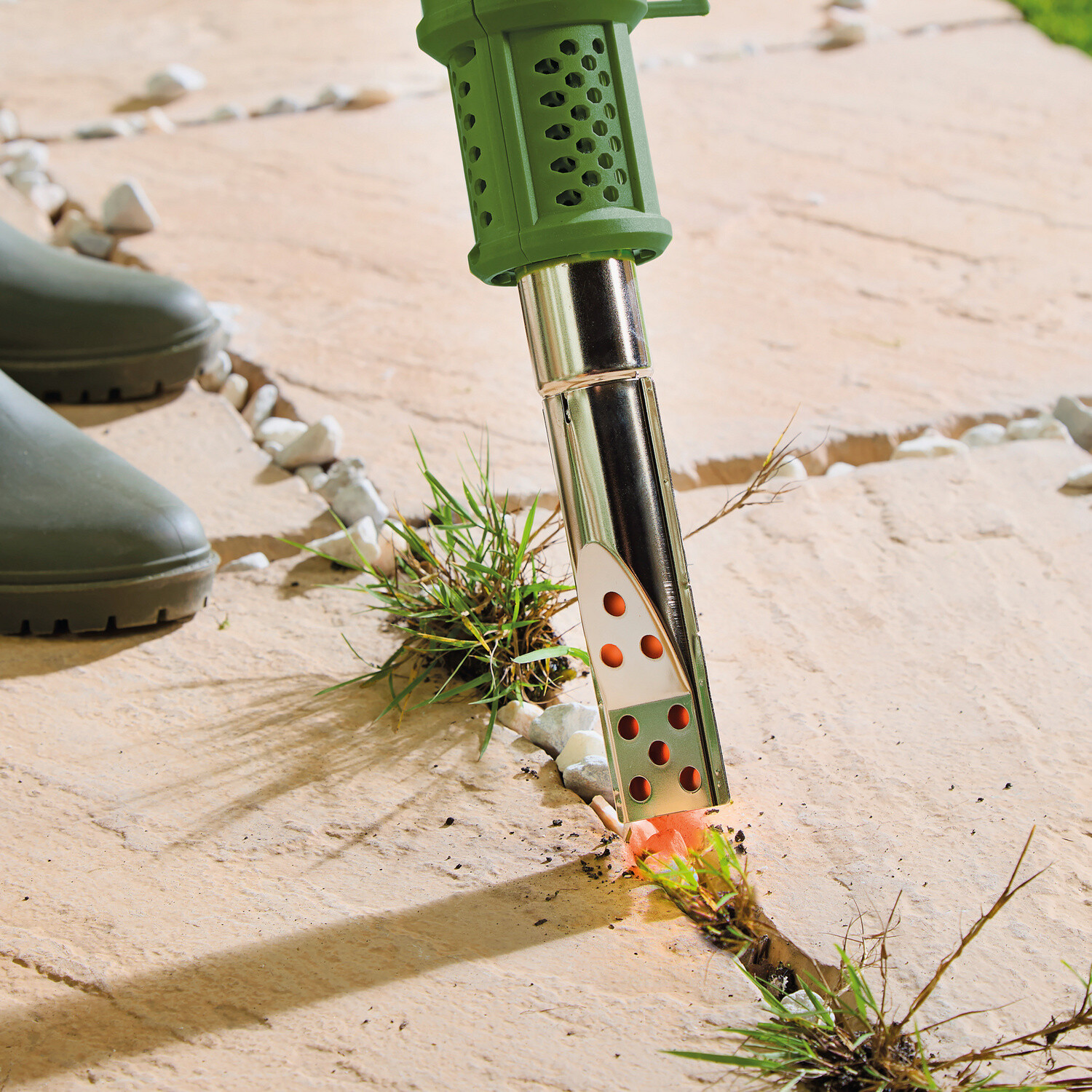 Únavné pletie je minulosťou: tento elektrický pomocník zvláda burinu s teplotou 650 °C - úplne bez chemikálií, plynu alebo ohýbania. Stačí stlačiť tlačidlo a môžete ho použiť na chodníkoch, terasách a záhonoch. Súčasťou balenia je 3-m kábel, tepelný štít a odnímateľná rukoväť.