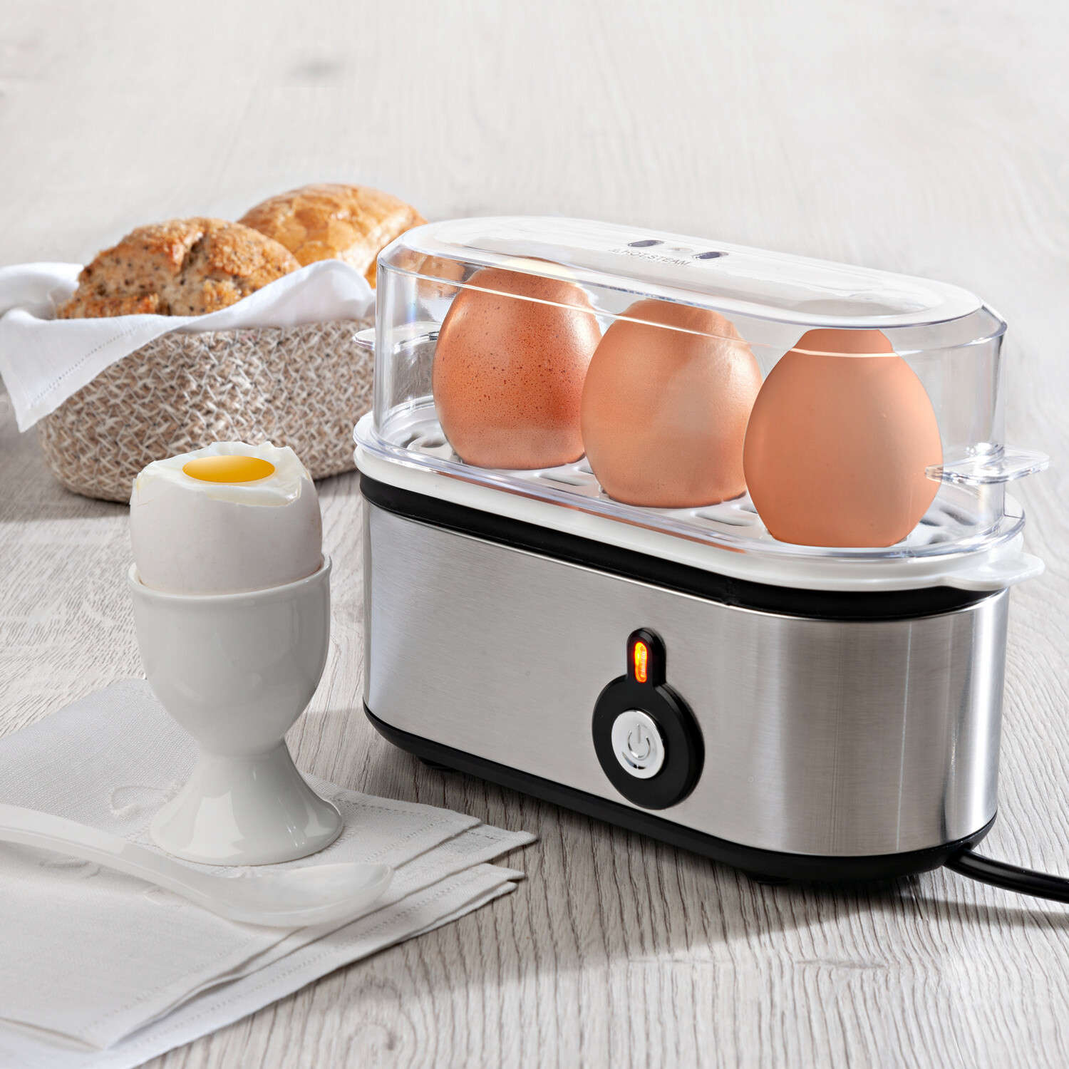 Elegantný dizajn a nízka spotreba energie! Tento kompaktný varič vajec spotrebuje až o 70 % menej energie ako sporák. Vaše vajcia na raňajky budú dokonale uvarené: namäkko, na hniličku alebo natvrdo. Vyberateľná varná vložka na chladenie vajec.