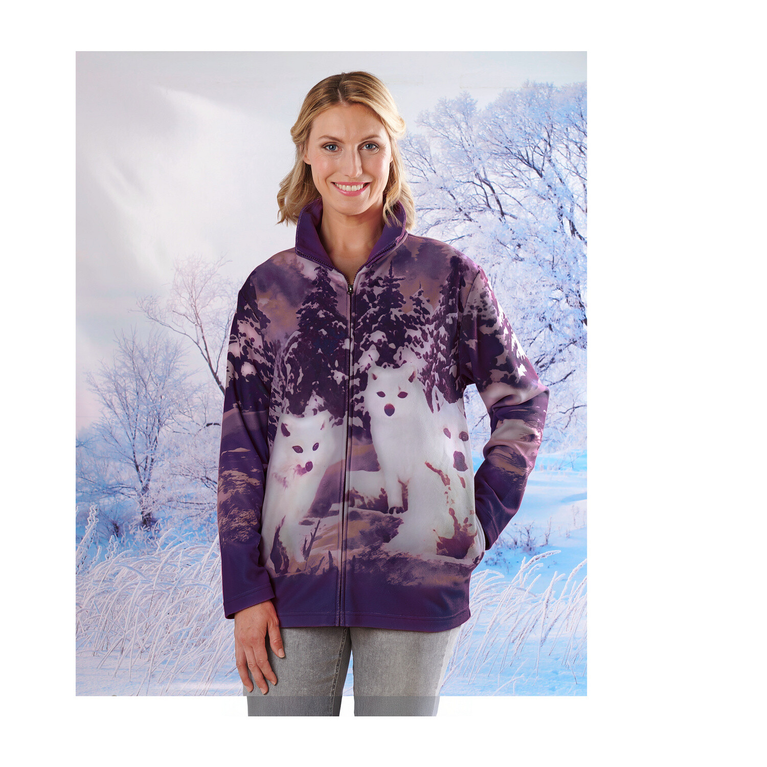 Vlci v borovicovom lese - táto fleecová bunda je jedinečná. Je krásne mäkká a príjemná na dotyk, má stojatý golier a zips vpredu - ideálna na relaxáciu a pohodlie.
