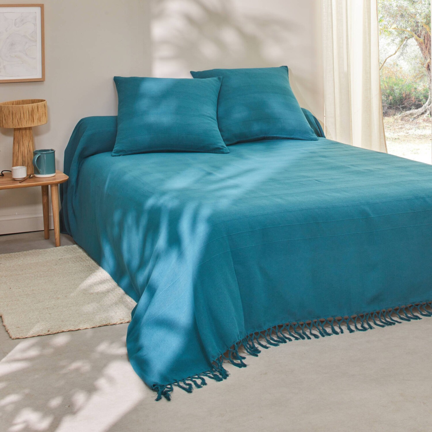 Jednofarebná ručne tkaná bavlnená prikrývka a obliečka na vankúš