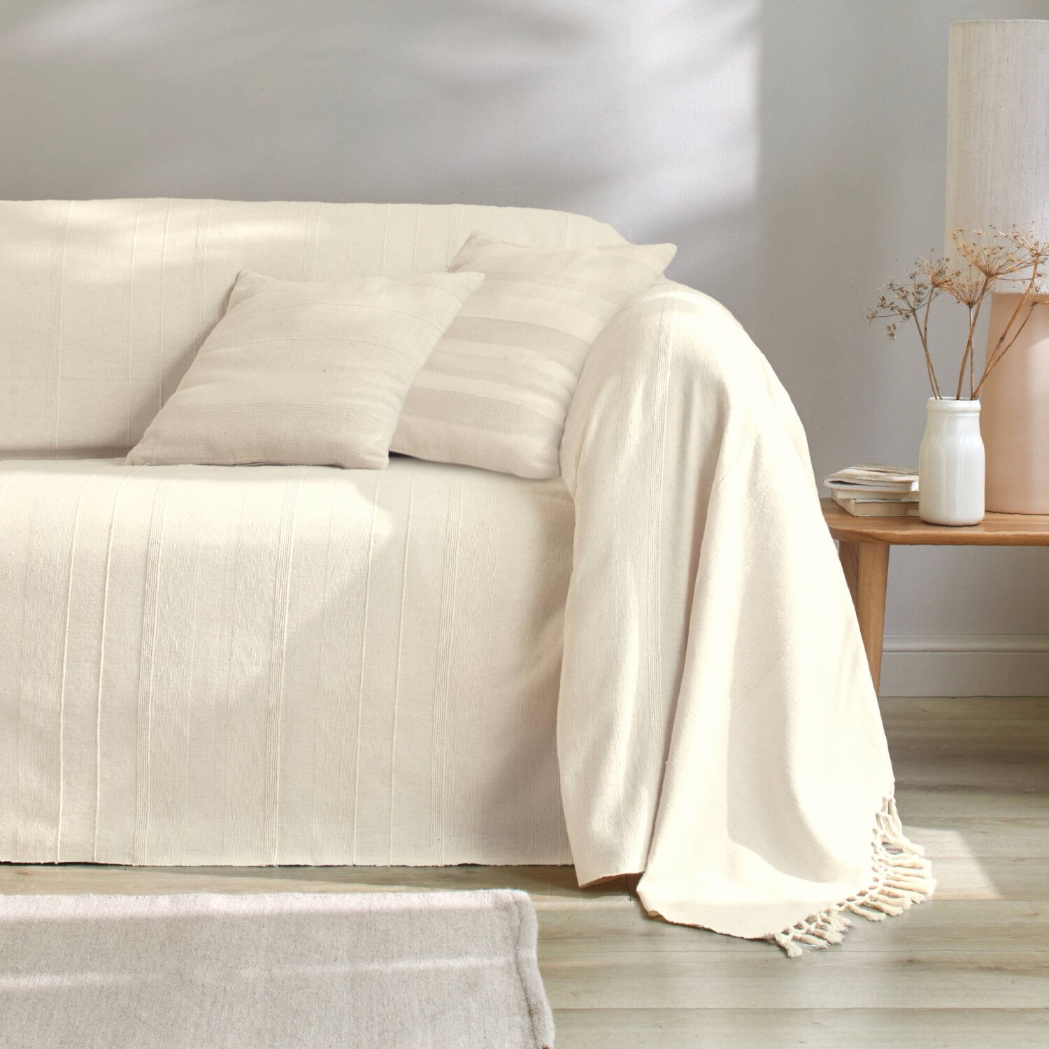 Jednofarebná ručne tkaná bavlnená prikrývka a obliečka na vankúš