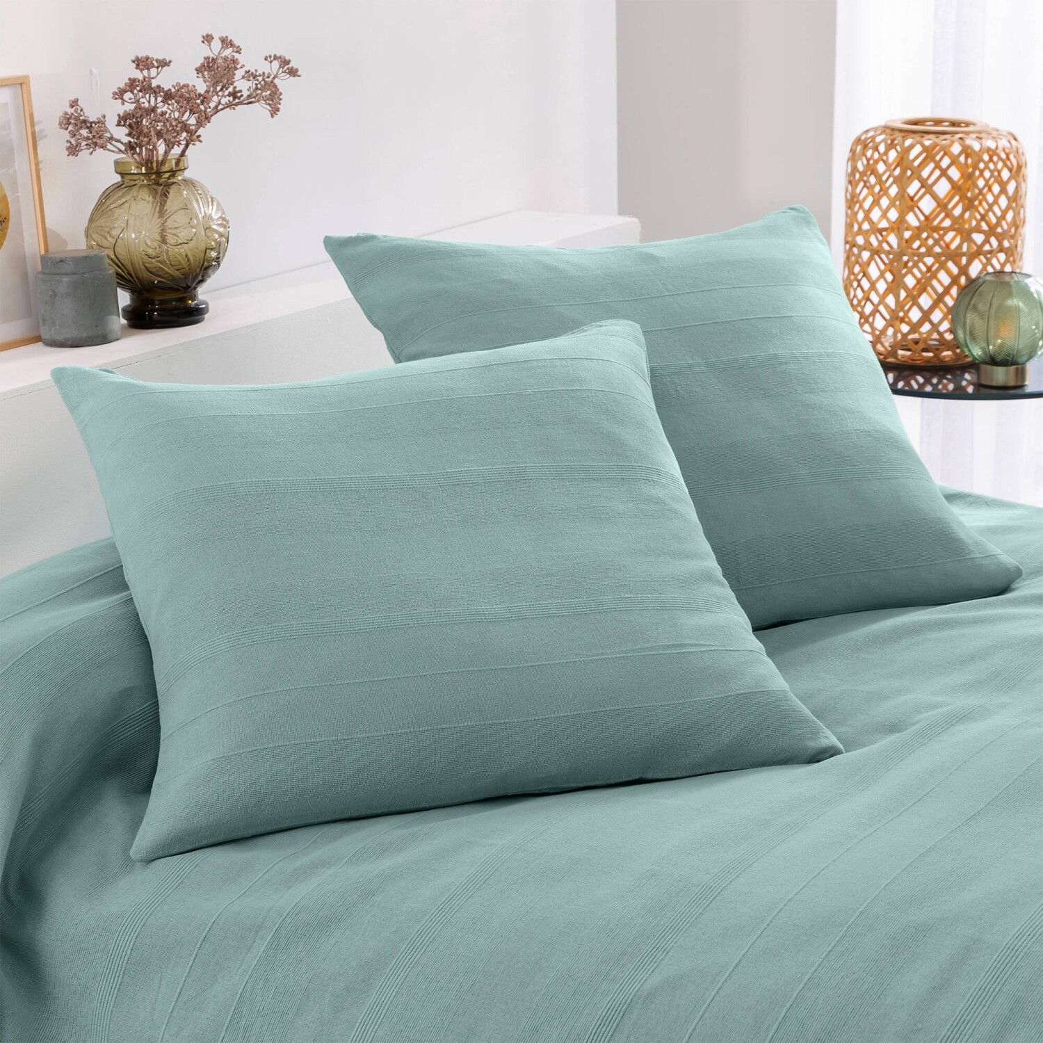 Jednofarebná ručne tkaná bavlnená prikrývka a obliečka na vankúš