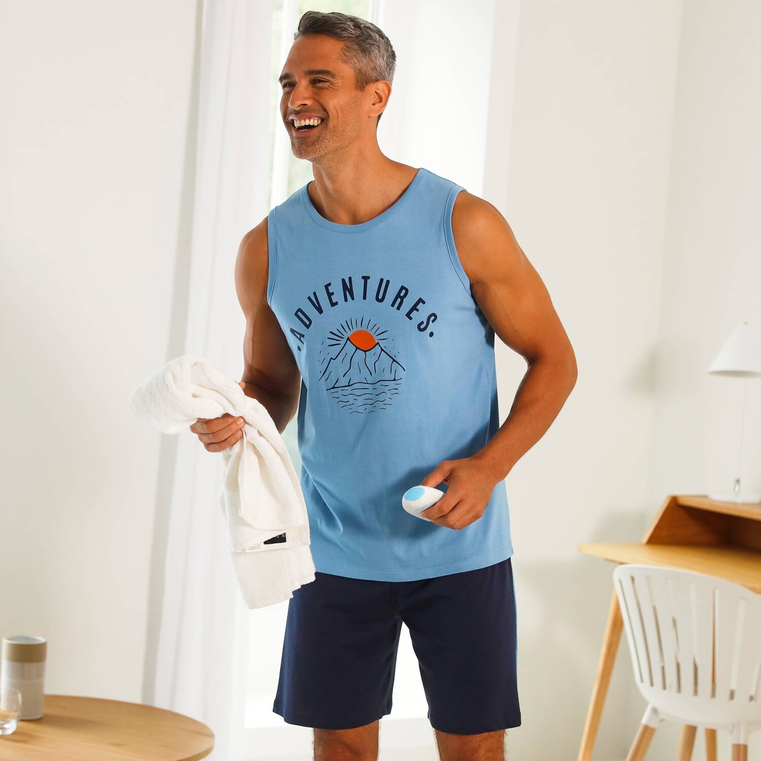 Pyžamo na gombíky je ušité z originálneho piké úpletu. Kabátik so zapínaním na gombíky. Bowling golier. Dlhé rukávy. Našité náprsné vrecko. Rovný spodný lem. Nohavice s pružným pásom. Rázporok na 2 gombíky. Rovné nohavice. Standard 100 by Oeko-Tex (n° CQ 1216 / 3 IFTH). Táto známka označuje textilné výrobky, ktoré boli podrobené laboratórnym testom na široké spektrum škodlivých látok a výrobok je bezpečný nad rámec platných noriem. Možno prať v práčke.