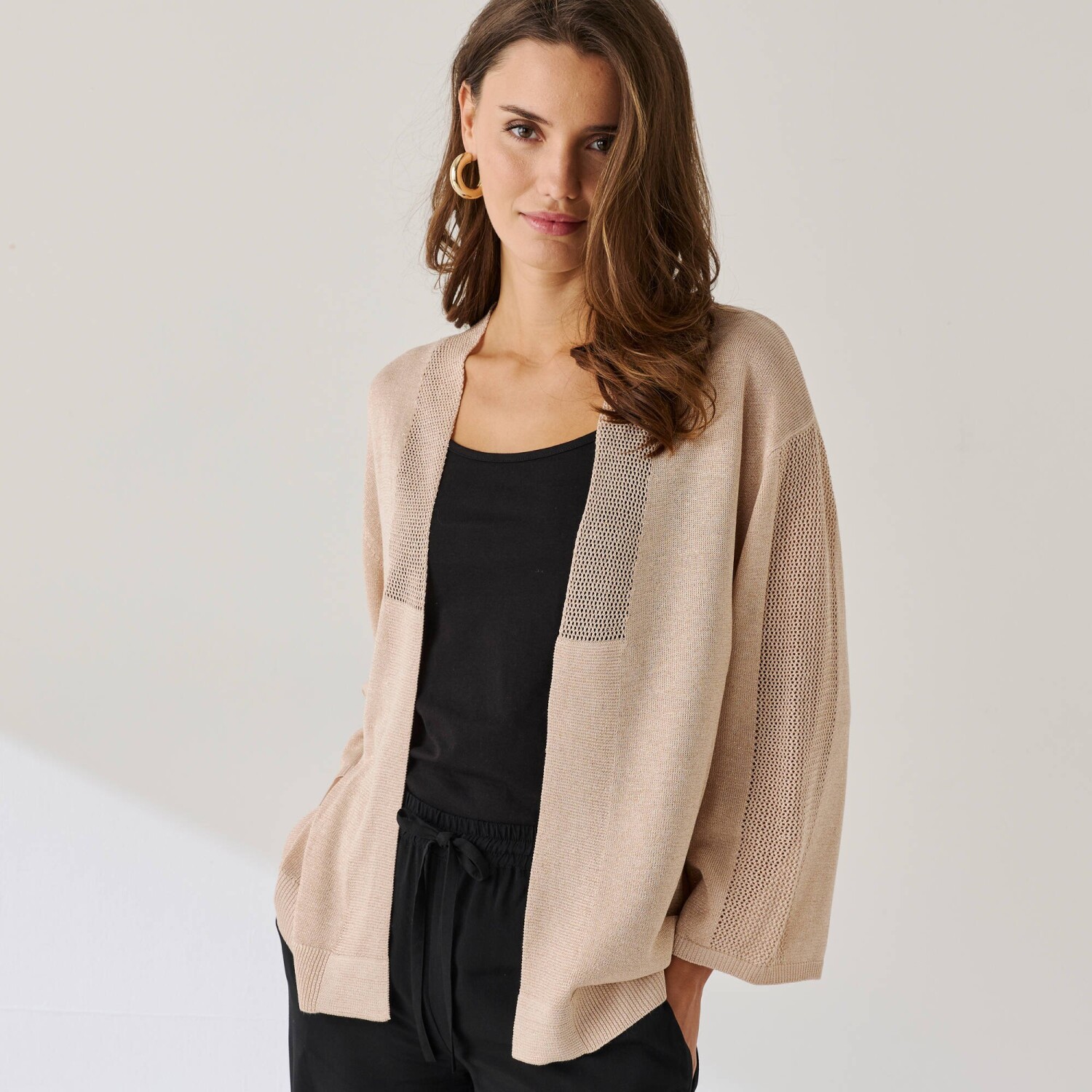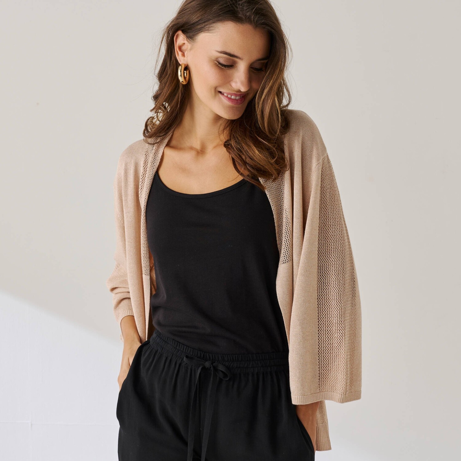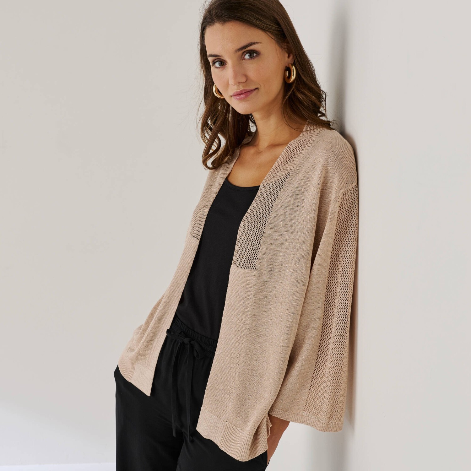 Sveter mohérový na dotyk nemá konkurenciu! Z mäkkého úpletu pointelle. Ažúrový jemný vzor. Okrúhly výstrih. Vpredu na gombíky. Dlhé nazberané rukávy. Zvlnené zakončenie po celej dĺžke výstrihu a gombíkovej légy. Rovný spodný lem. Možno prať v práčke.