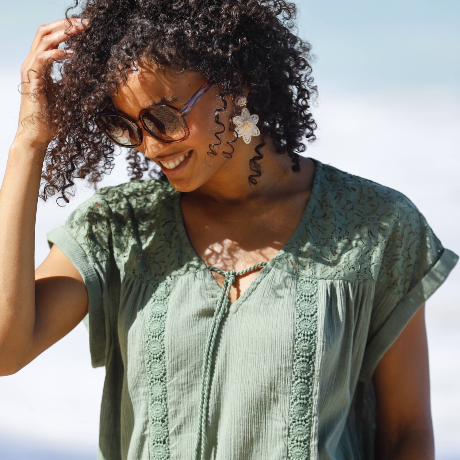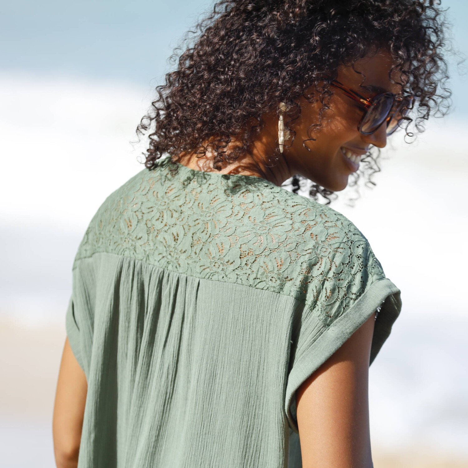 Zamilujte si krátke krepónové šaty s potlačou rastlín. Ľahký materiál, ľahká údržba. Vpredu a vzadu výstrih do V. Volánové krátke rukávy. Nariasené sedlo na bokoch. Rozšírený spodný lem. Možno prať v práčke.