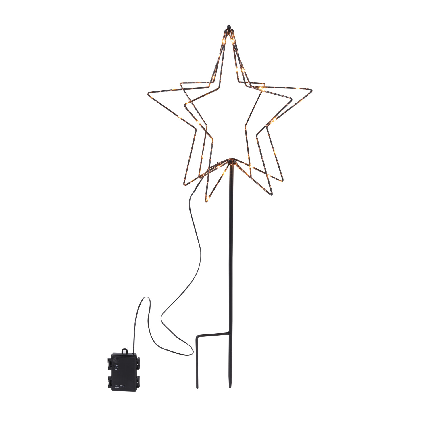 Štýlová vianočná dekorácia pre záhradu, balkón alebo terasu. Kovová hviezda so zápichom s teplými bielymi LED diódami rozžiari váš vonkajší priestor a navodí príjemnú sviatočnú atmosféru. Vďaka batériovej prevádzke ju môžete umiestniť kamkoľvek bez nutnosti pripojenia k elektrickej sieti. Prevádzka na 3x AA batérie (nie sú súčasťou). Rozmery: výška 75 cm.