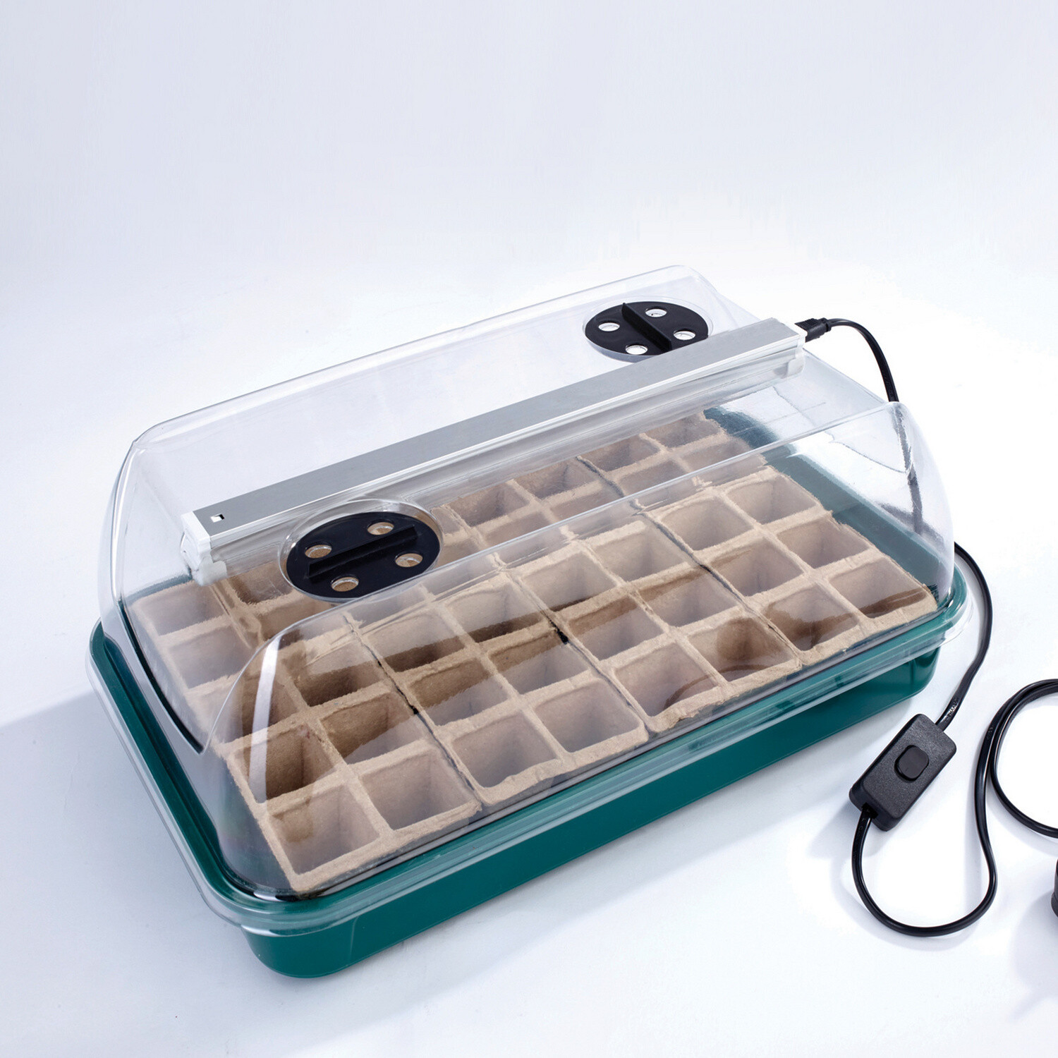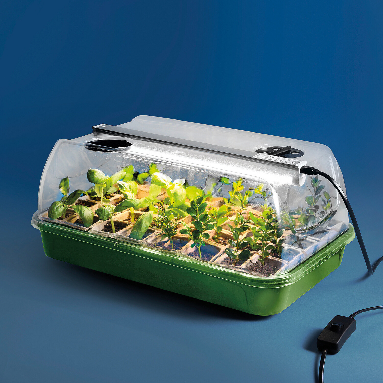 Začnite s výsevom svojich obľúbených rastlín skôr a ušetrite si neskoršie výdavky v záhradnom centre! Mini skleník s 30 LED diódami a 2 regulátormi vetrania vo veku poskytuje správne množstvo svetla a vzduchu na pestovanie rastlín v interiéri. 4 misky so 40 kompostovateľnými pestovateľskými kvetináčmi - ideálne na okenný parapet alebo do zimnej záhrady.