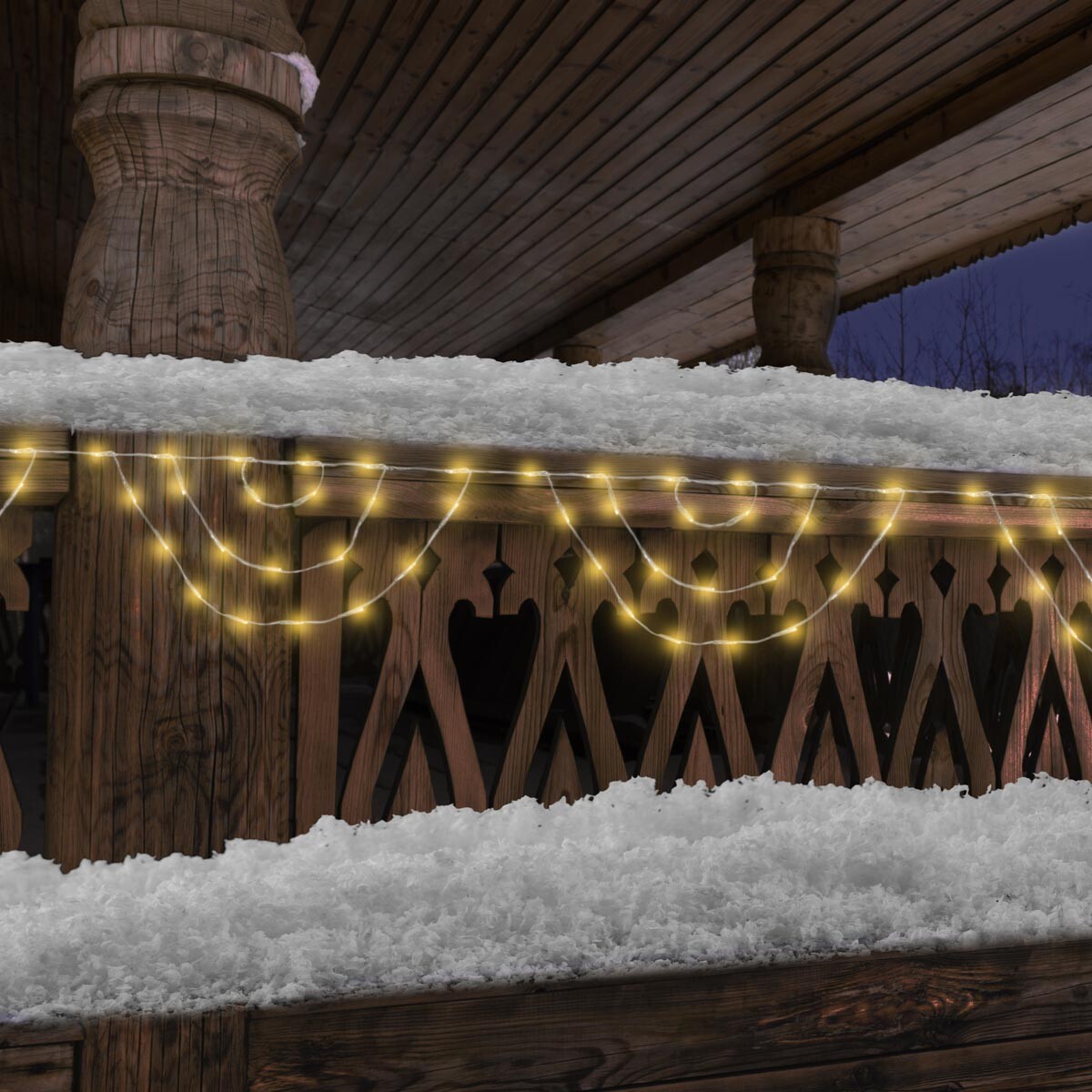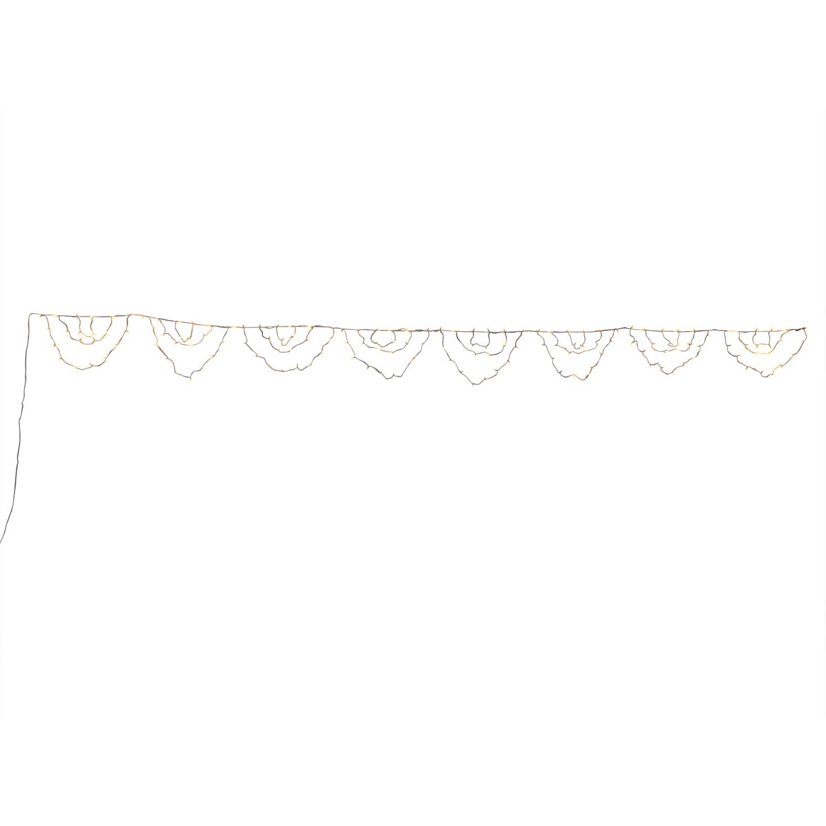 Rozžiarte svoj dom vianočnou atmosférou s elegantnou LED reťazou s oblúkmi. Osem pravidelne rozmiestnených oblúkov so 168 teplými bielymi LED vytvorí nádhernú dekoráciu pre balkón, terasu či pergolu. Vďaka transparentnému káblu pôsobí svetelný efekt čisto a nenápadne. Sieťové napájanie, s krytím IP44 – vhodné na vonkajšie použitie. Materiál: plast. Rozmery: celková dĺžka cca 11 m.