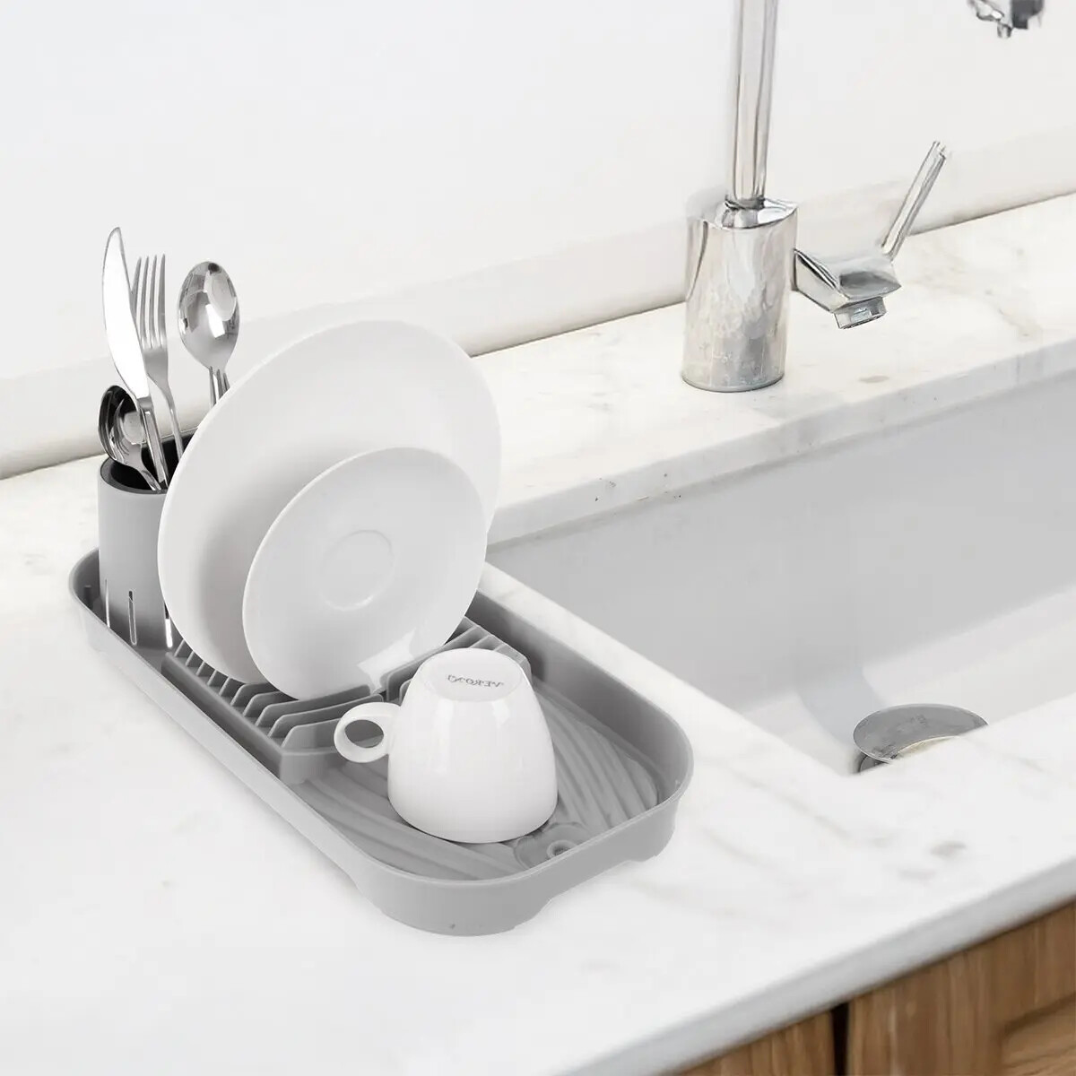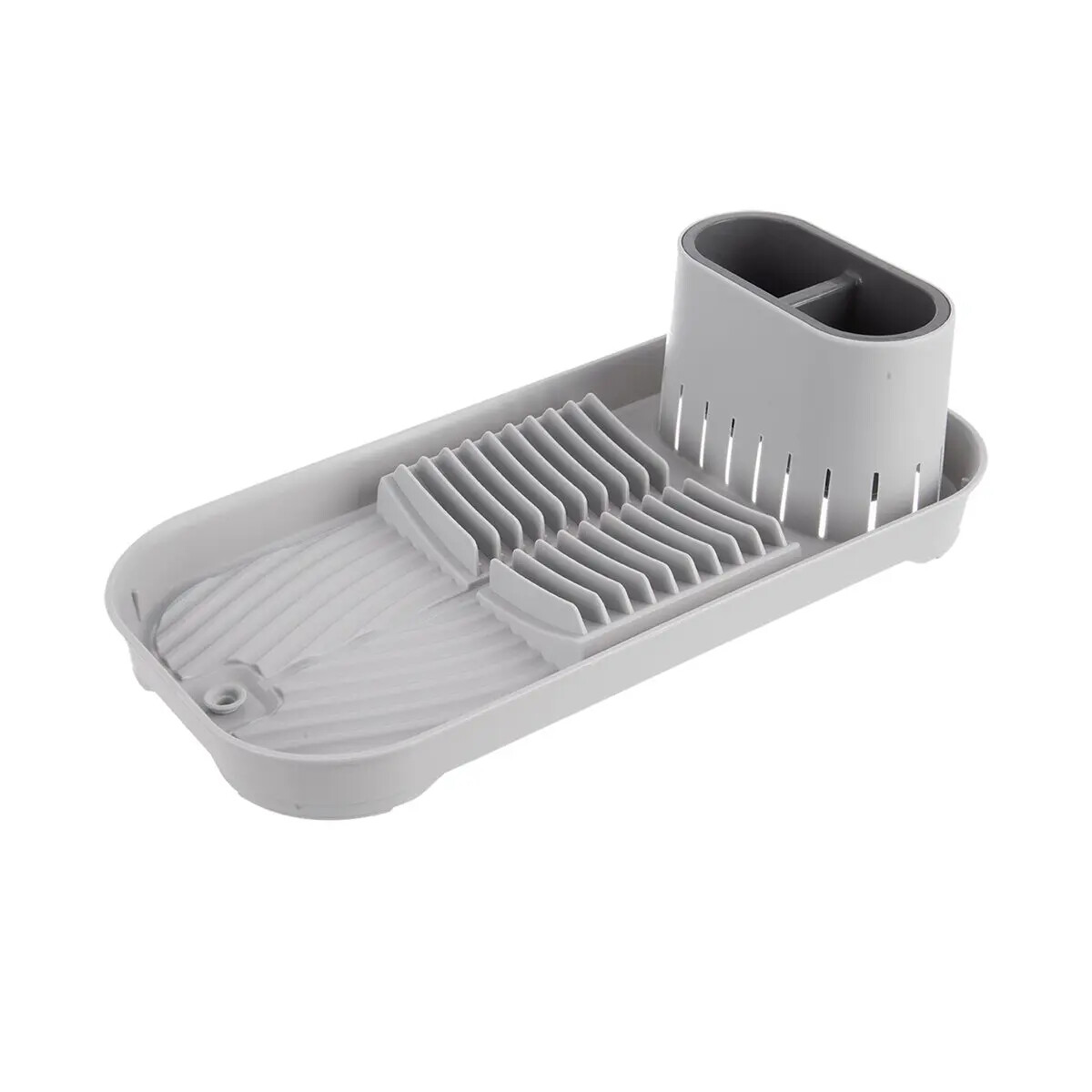 Praktický odkvapkávač s odnímateľnou priehradkou na príbory a vyhradenou plochou pre taniere je ideálnym pomocníkom do každej kuchyne. Vďaka svojmu úzkemu prevedeniu je perfektnou voľbou aj do menších kuchýň, na chaty, do apartmánov, do karavanov alebo všade tam, kde je potrebné šetriť miestom. Jeho premyslený dizajn zaisťuje efektívne odvádzanie vody vďaka dômyselnému systému drážok v časti základne, ktorá je vybavená výpustom so zátkou. Vďaka tomuto riešeniu odkvapkávač nevyžaduje samostatný podnos, pretože voda je odvádzaná priamo mimo neho. Stabilitu na kuchynskej linke zaisťujú silikónové protišmykové prvky na spodnej strane, ktoré bránia nechcenému pohybu počas používania. Tento odkvapkávač tak spája funkčnosť, hygienu a praktickosť v elegantnom prevedení. Nie je vhodný do umývačky. Materiál: plast PP + TPE protišmyky. Rozmery: 39 x 19,5 x 11 cm.