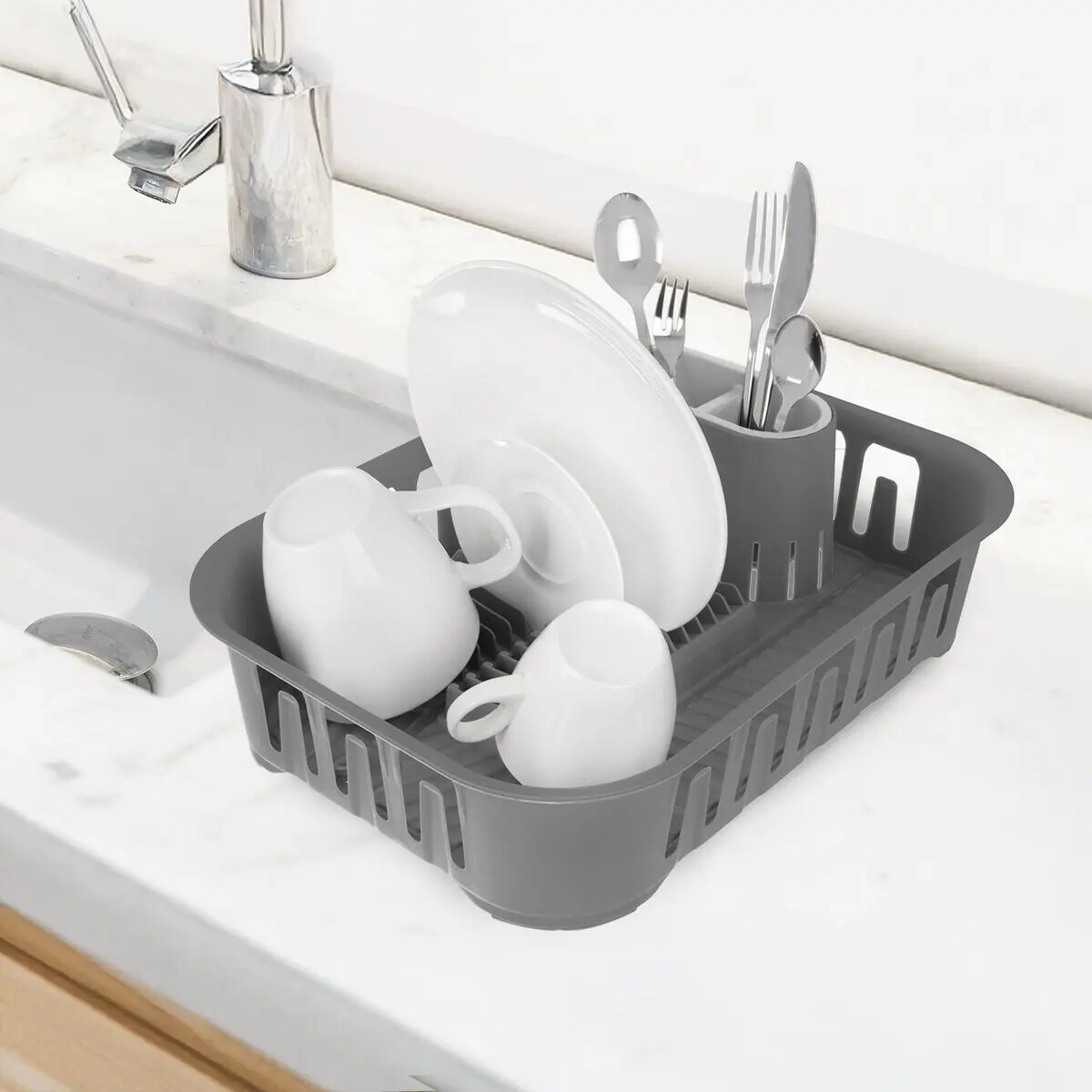 Praktický odkvapkávač s odnímateľnou priehradkou na príbory a vyhradenou plochou pre taniere je ideálnym pomocníkom do každej kuchyne. Jeho premyslený dizajn zaisťuje efektívne odvádzanie vody vďaka dômyselnému systému drážok v časti základne, ktorá je vybavená výpustom so zátkou. Vďaka tomuto riešeniu odkvapkávač nevyžaduje samostatný podnos, pretože voda je odvádzaná priamo mimo neho. Stabilitu na kuchynskej linke zaisťujú silikónové protišmykové prvky na spodnej strane, ktoré bránia nechcenému pohybu počas používania. Tento odkvapkávač tak spája funkčnosť, hygienu a praktickosť v elegantnom prevedení. Nie je vhodný do umývačky. Materiál: plast PP + TPE protišmyky. Rozmery: 39 x 28,5 x 11 cm.