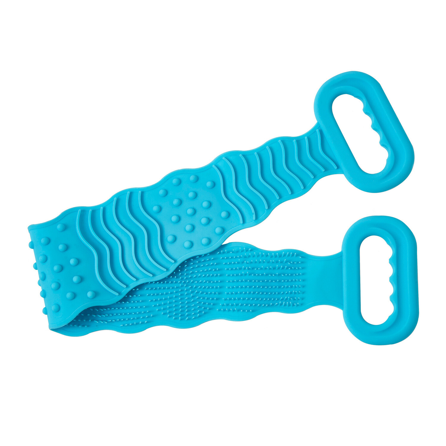 Umývanie, masáž a peeling v jednom! Týmto silikónovým pásom dosiahnete aj na chrbát a nohy bez toho, aby ste sa museli premáhať alebo čakať na cudziu pomoc. Vďaka protišmykovým rukovätiam ho možno používať z oboch strán: stranu s hustými štetinami na umývanie, stranu s výstupkami na jemný peeling a masáž na podporu krvného obehu.