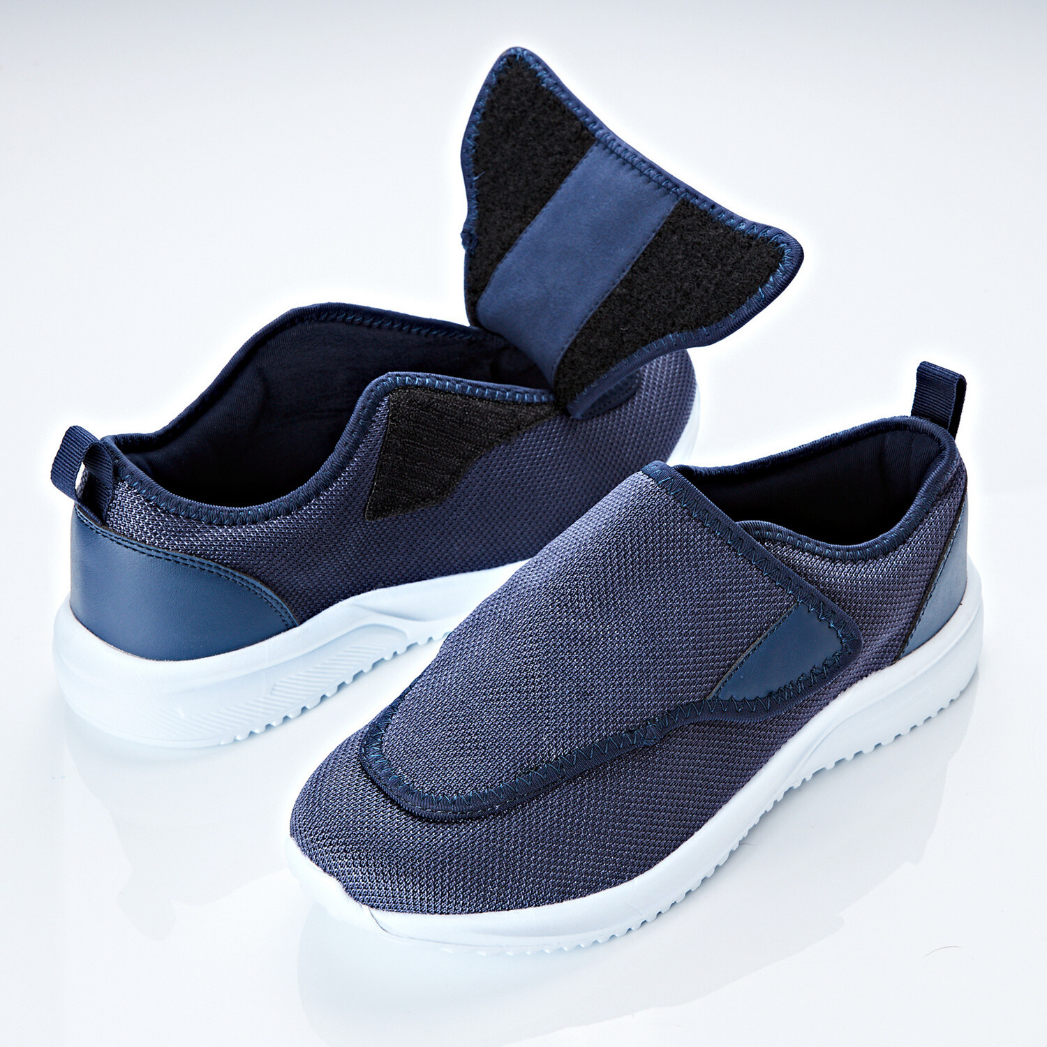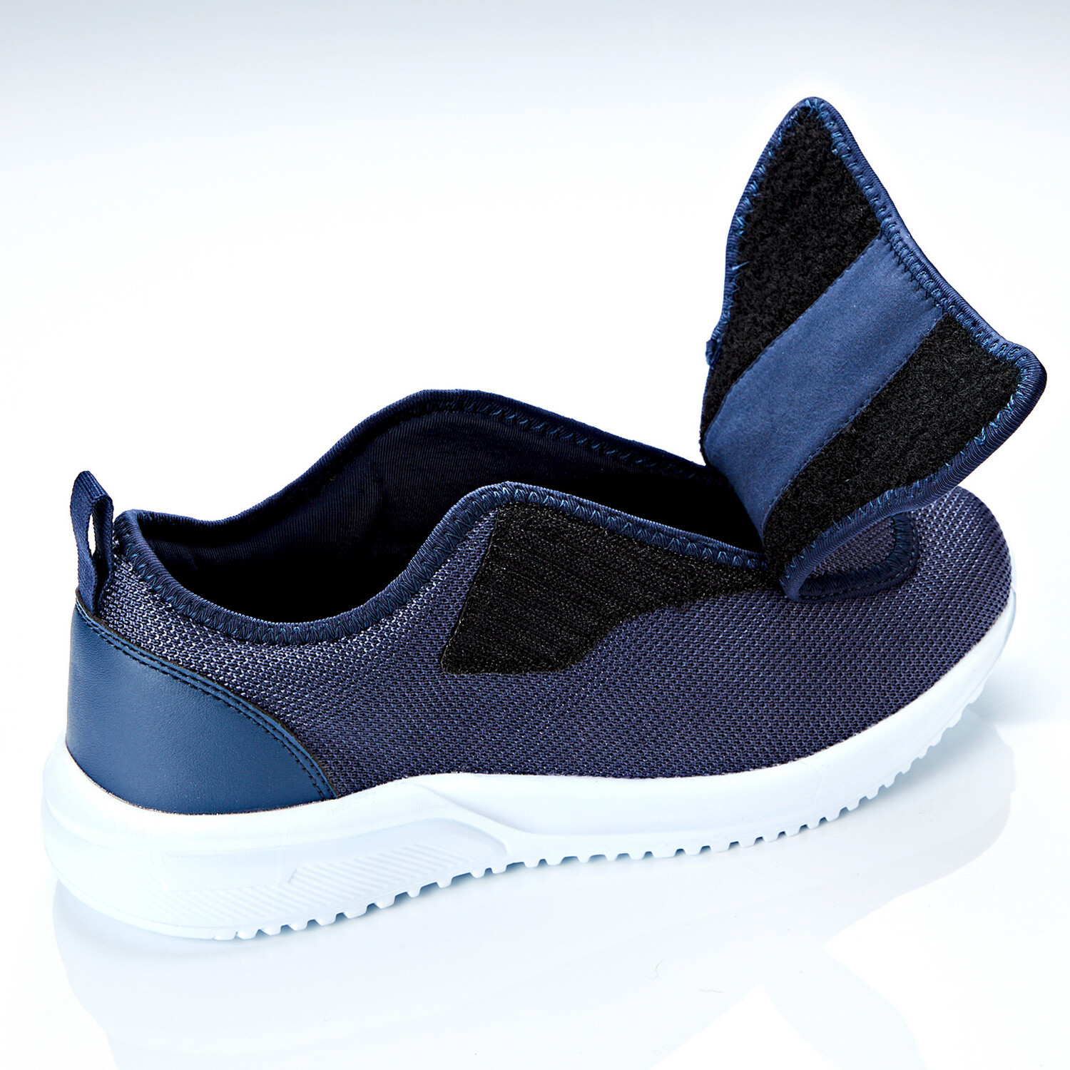 Jednoduché obúvanie a vyzúvanie! Jednoducho otvoríte suchý zips na oboch stranách - a pohodlne sa obujete! Športový strih v štýle tenisiek, príjemné a mäkké vo vnútri, s mäkko vystuženou pätou. Vyberateľná stielka. Hladká, vysokoelastická podrážka svetlej farby, 3 cm vysoká pod pätou.