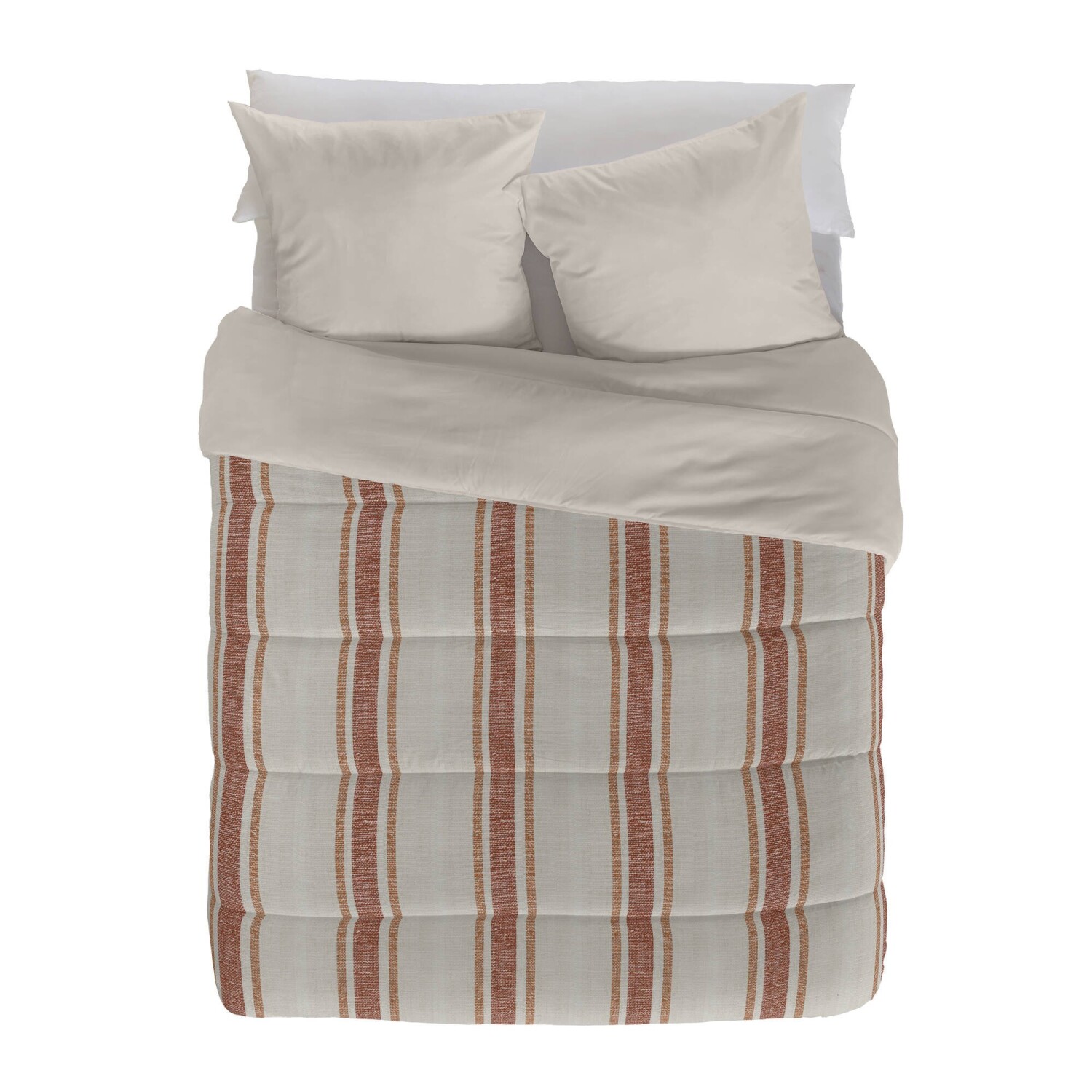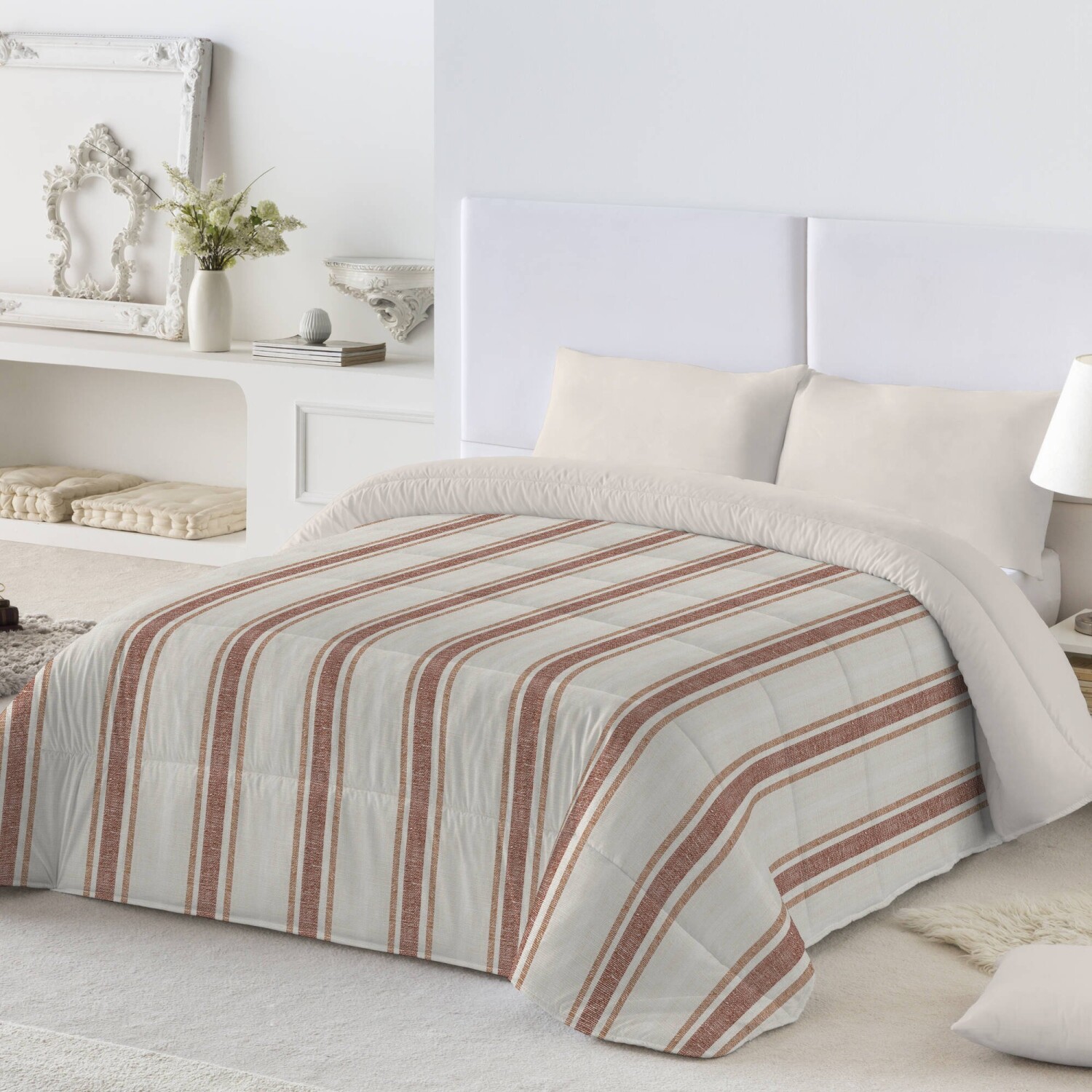 Nechajte sa očariť módnymi pruhmi jemnej prikrývky z mikrovlákna! Moderná a zároveň nadčasová, navyše poskytuje mäkký a hrejivý komfort pre neuveriteľný pocit pohodlia po celú noc. Čerešničkou na torte je použitie bez povlaku: prikrývka je obojstranná, takže môžete ľahko meniť jej vzhľad. Praktická a dekoratívna, možno ju použiť bez povlaku. S výplňou zo silikónových dutých vlákien poskytne mäkkosť a nadýchanosť, vyššie izolačné vlastnosti a maximálnu hrejivosť. 2 odlišné strany: jedna strana s potlačou, druhá strana jednofarebná. Gramáž 200g/m2 do vykurovaných miestností (20 ° C a viac). Prešitie čiary. Zakončenie zladeným jednofarebným lemom. Standard 100 by Oeko-Tex (n° CQ 1216/1 IFTH). Táto známka označuje textilné výrobky, ktoré boli podrobené laboratórnym testom na široké spektrum škodlivých látok a výrobok je bezpečný nad rámec platných noriem. Možno prať v práčke. Vyrobené v Španielsku.