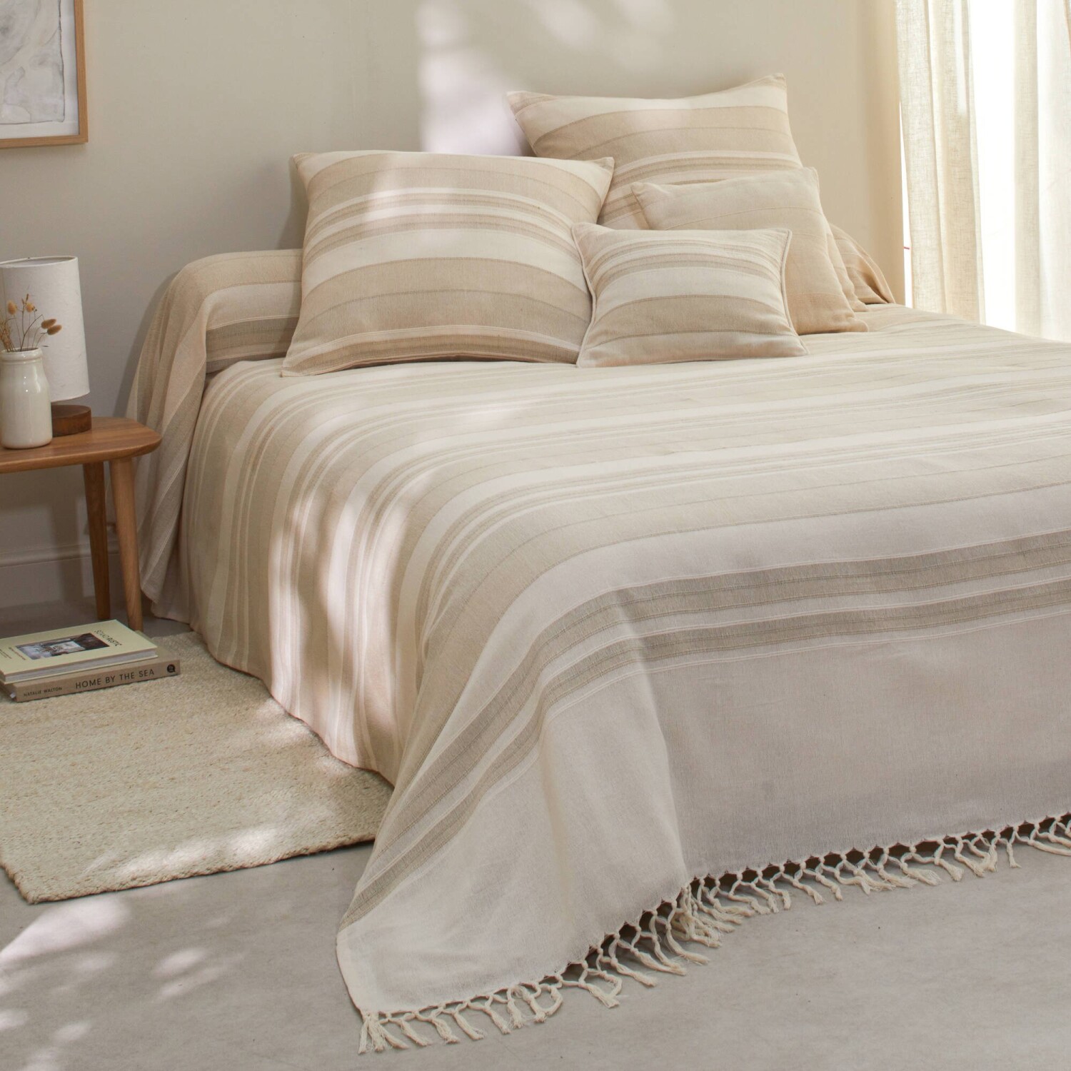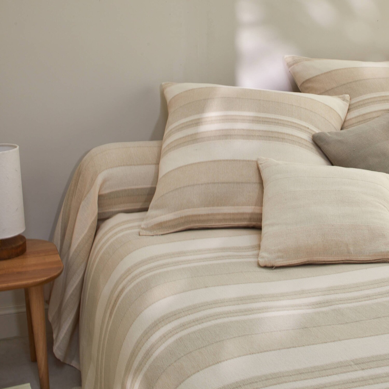 Pruhovaná ručne tkaná bavlnená prikrývka a obliečka na vankúš