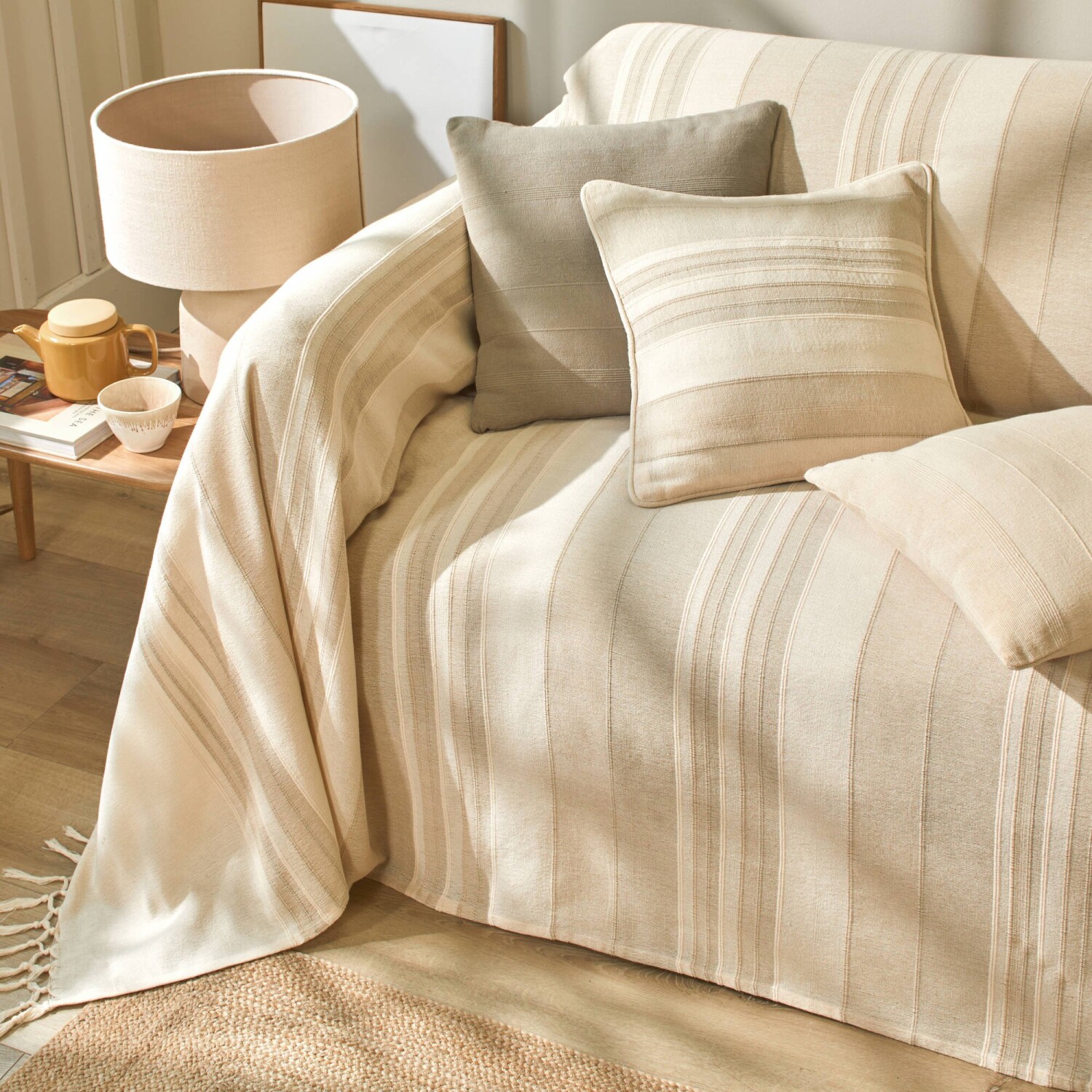 Vyberte si ručne tkané plédy a prikrývky v 4 veľkostiach. Materiál s optickým efektom. Zakončené viazačkami so strapcami na 2 stranách. Standard 100 by Oeko-Tex (n° CQ 1216/1 IFTH). Táto známka označuje textilné výrobky, ktoré boli podrobené laboratórnym testom na široké spektrum škodlivých látok a výrobok je bezpečný nad rámec platných noriem. S ohľadom na ochranu životného prostredia odporúčame prať na 40 °C a sušiť voľne na vzduchu.