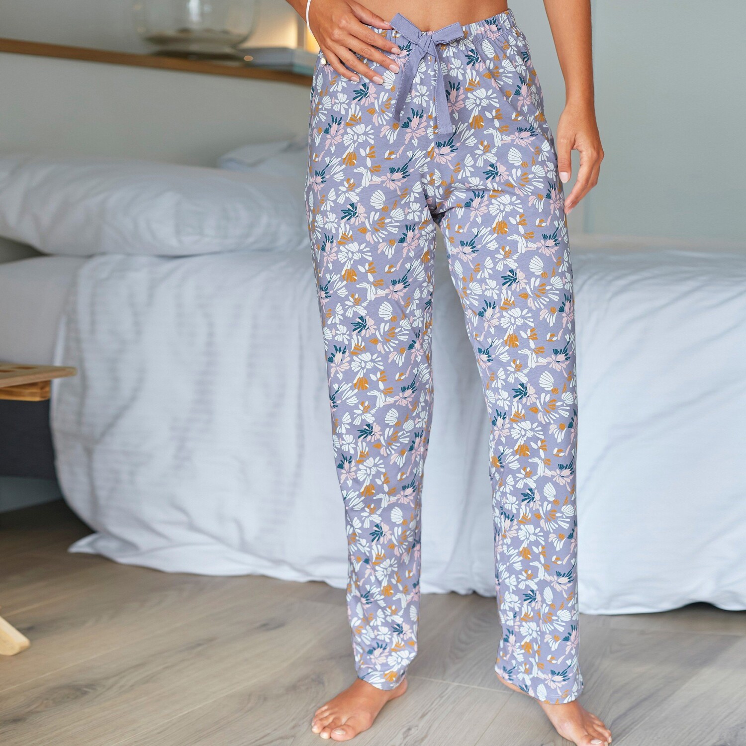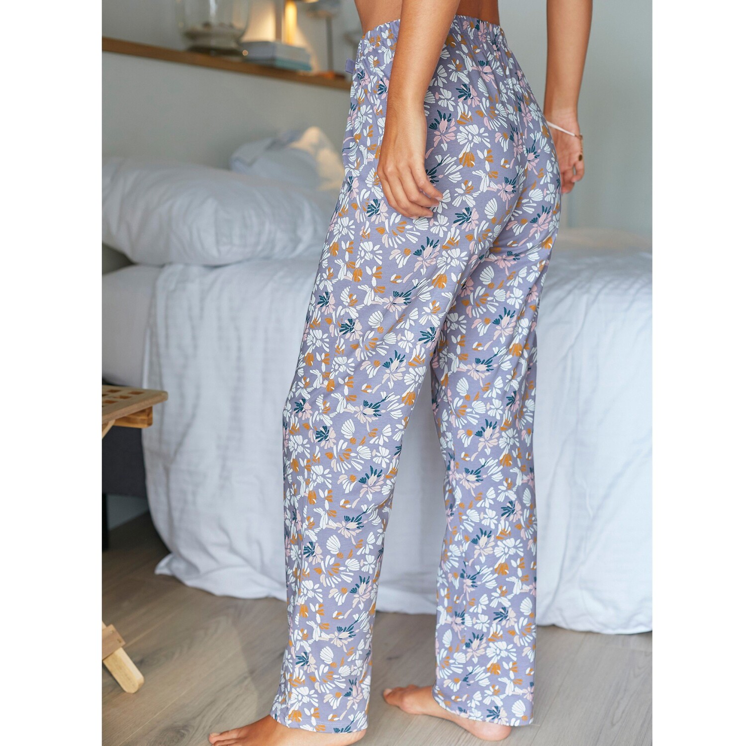 Inšpirujte sa kolekciou s potlačou okvetných lístkov a venujte pozornosť pyžamovým nohaviciam s potlačou. Pyžamové nohavice v aktuálnom strihu. Exkluzívna potlač Blancheporte. Pružný pás s kontrastnou stuhou. Rovné nohavice. Standard 100 by Oeko-Tex (n° CQ 1216/3). Táto známka označuje textilné výrobky, ktoré boli podrobené laboratórnym testom na široké spektrum škodlivých látok a výrobok je bezpečný nad rámec platných noriem. Možno prať v práčke.