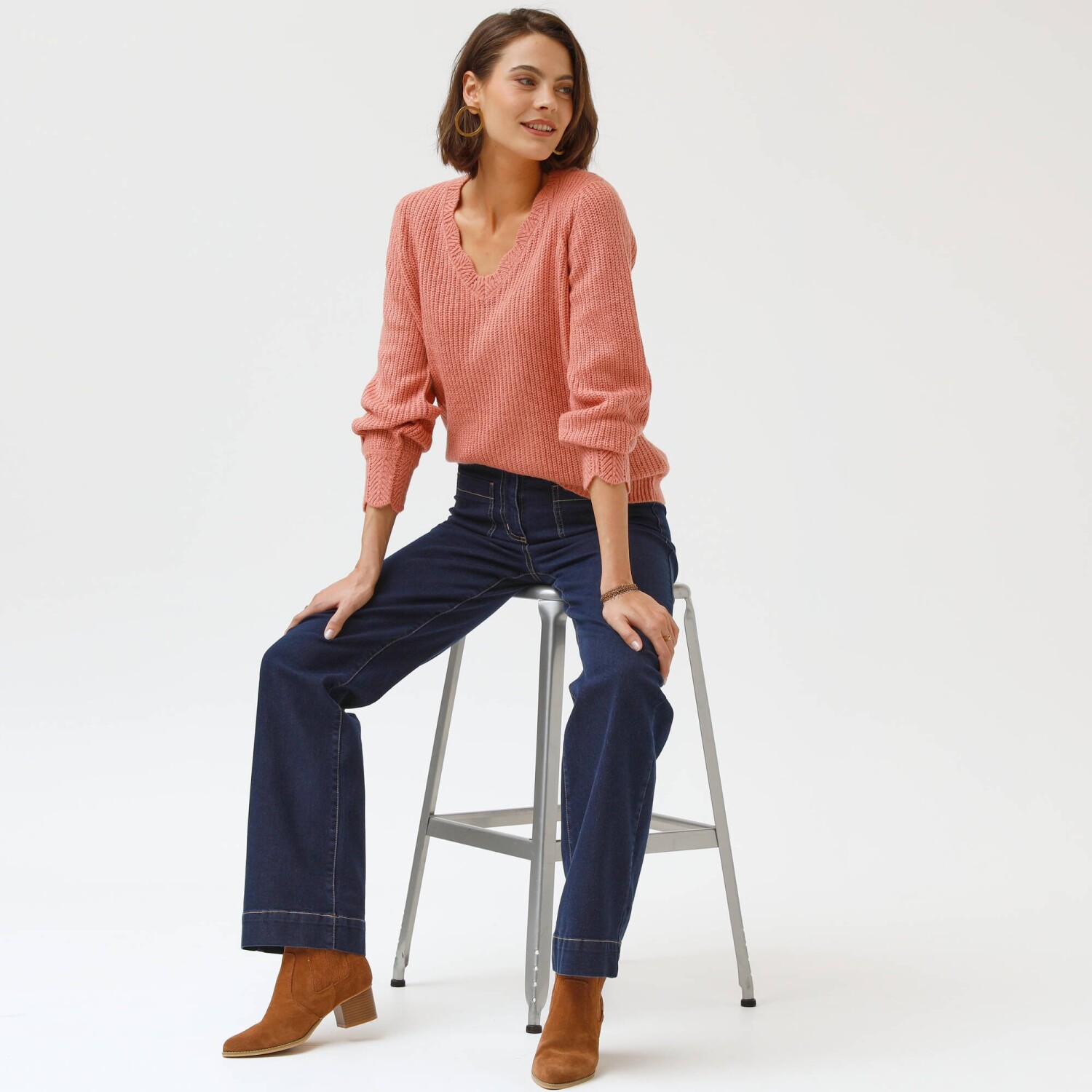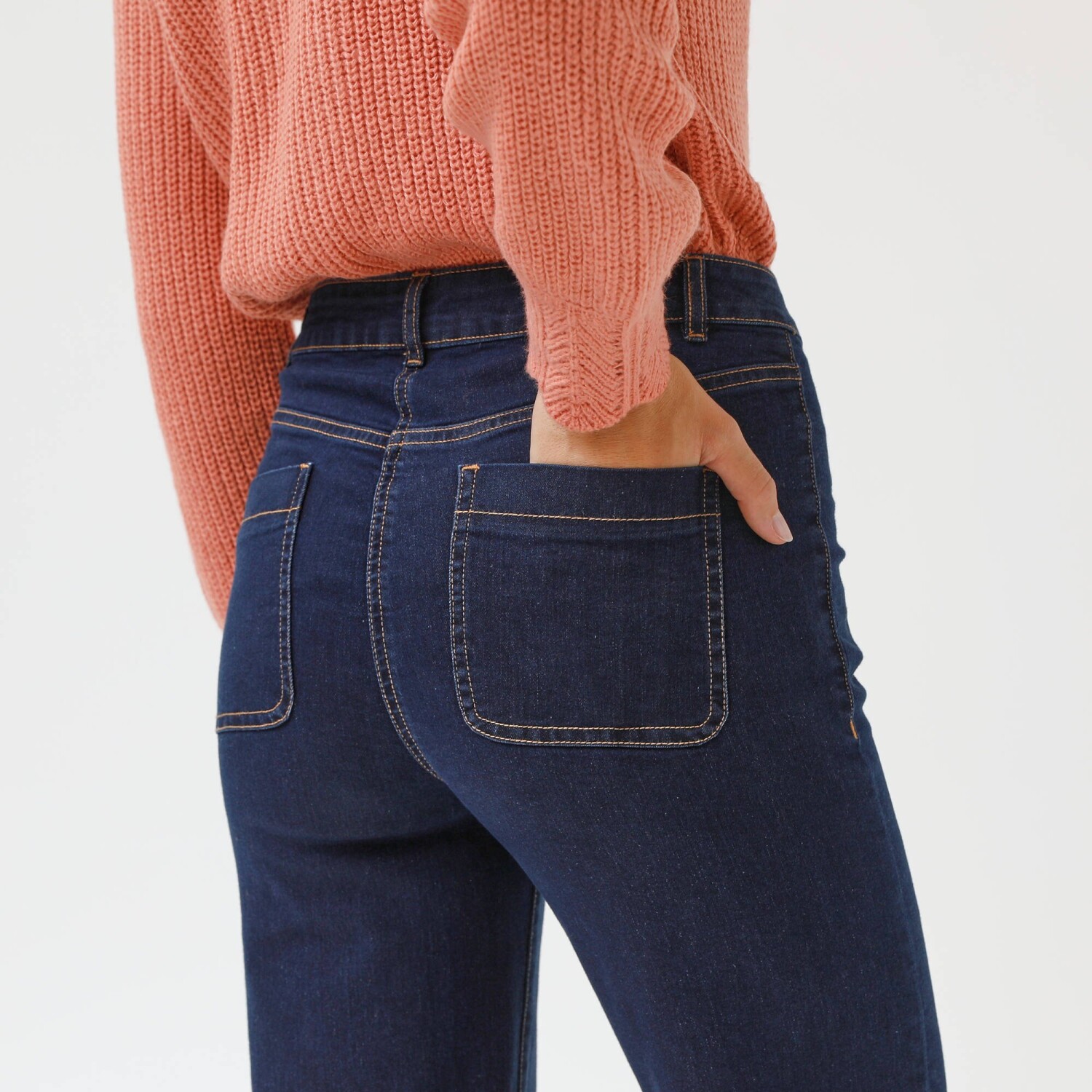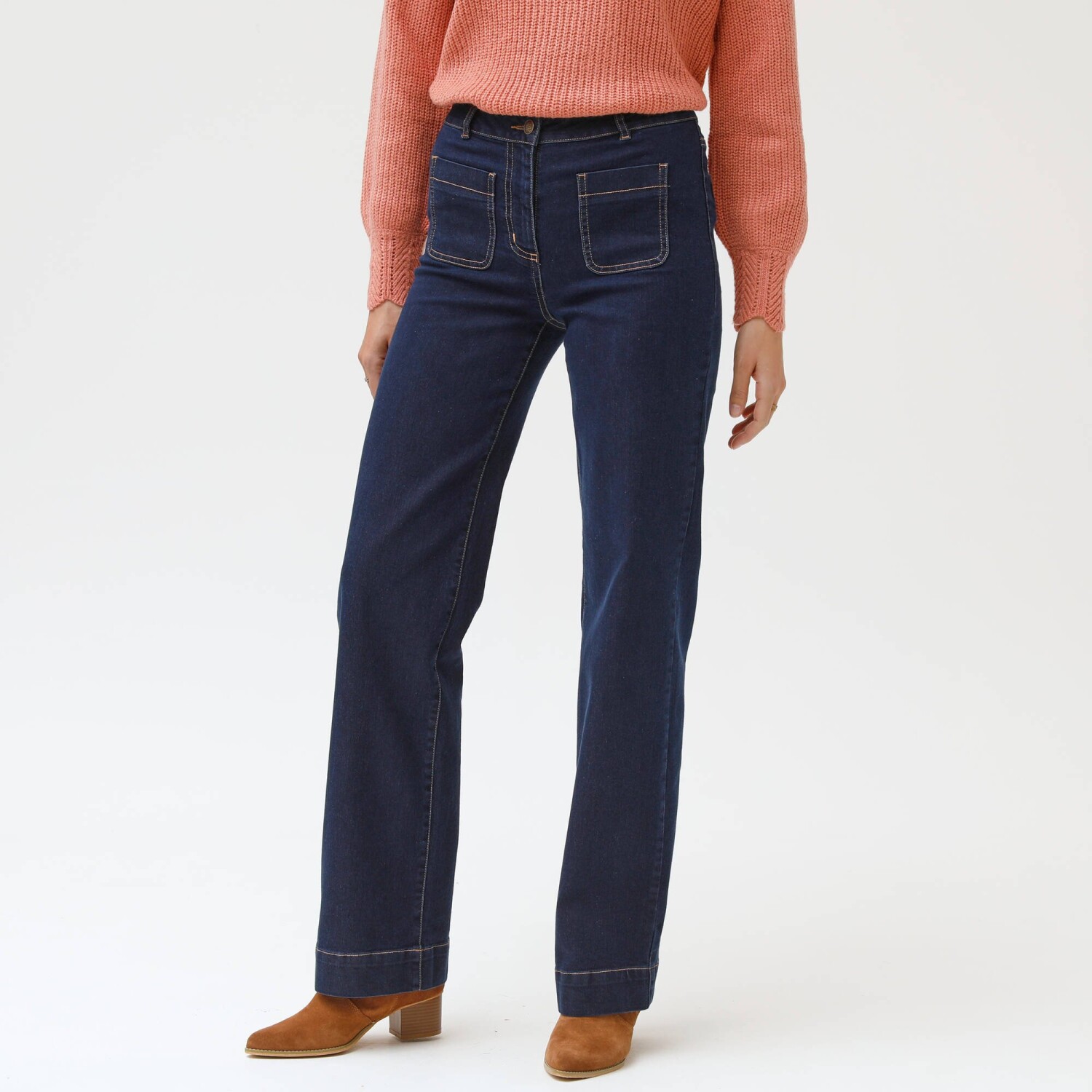 Rovný strih, príjemná šírka, vysoký pás, eco-friendly denim - tieto džínsy Vám poskytnú maximálnu voľnosť pohybu. Špeciálne navrhnuté pre ženy s výškou menej ako 160 cm. Široký strih. Vysoký pás. Tvarovaný pás s pútkami. Zapínanie na zips + gombík. 2 našité vrecká vpredu. Vzadu 2 našité vrecká a zvýšený sed. Kontrastné prešitie. Standard 100 by Oeko-Tex (n° CQ 1216/3 IFTH). Táto známka označuje textilné výrobky, ktoré boli podrobené laboratórnym testom na široké spektrum škodlivých látok a výrobok je bezpečný nad rámec platných noriem. Spoločnosť Blancheporte zvolila recyklovaný polyester, čím prispieva k boju proti plytvaniu a podporuje zodpovednejšiu spotrebu, ktorá rešpektuje životné prostredie. Možno prať v práčke.
