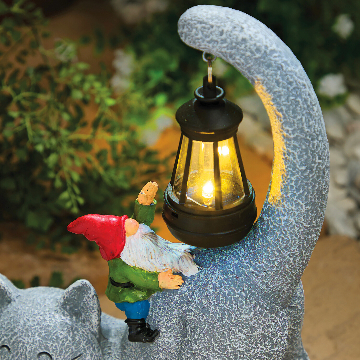 Mačka a usilovný záhradný trpaslík so solárnym lampášom – toto očarujúce duo prináša humor cez deň a atmosférické svetlo v noci. Solárny pohon.