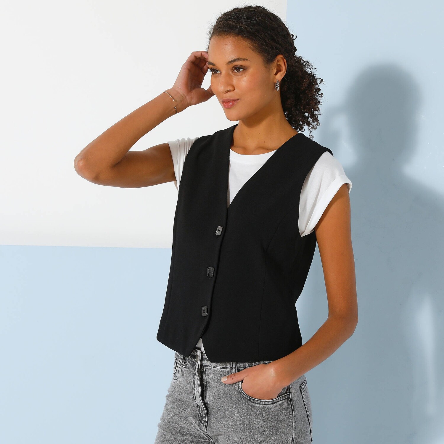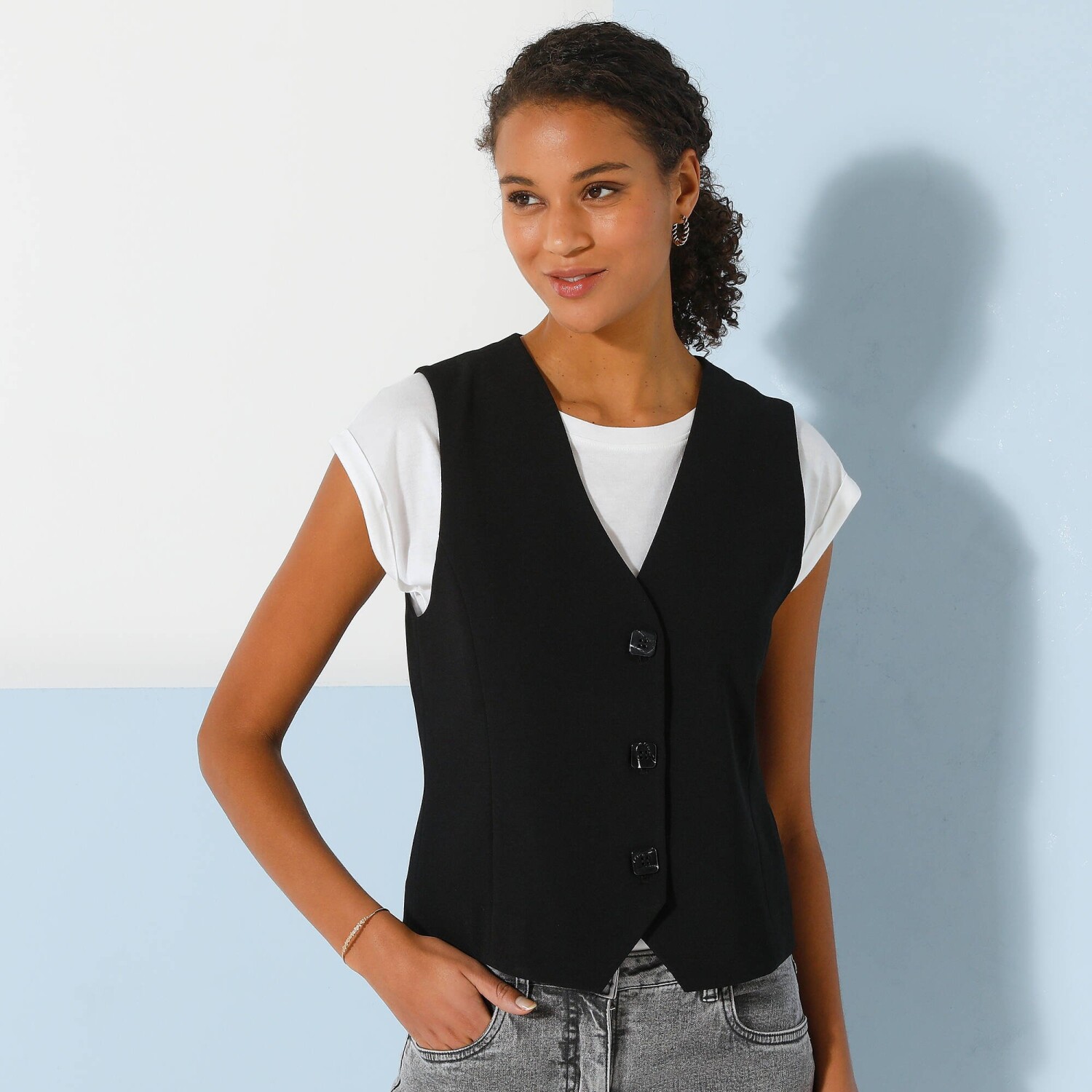 Splývavý blejzer pre nižšiu postavu
