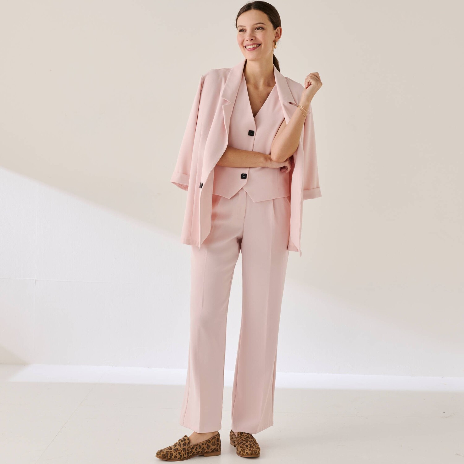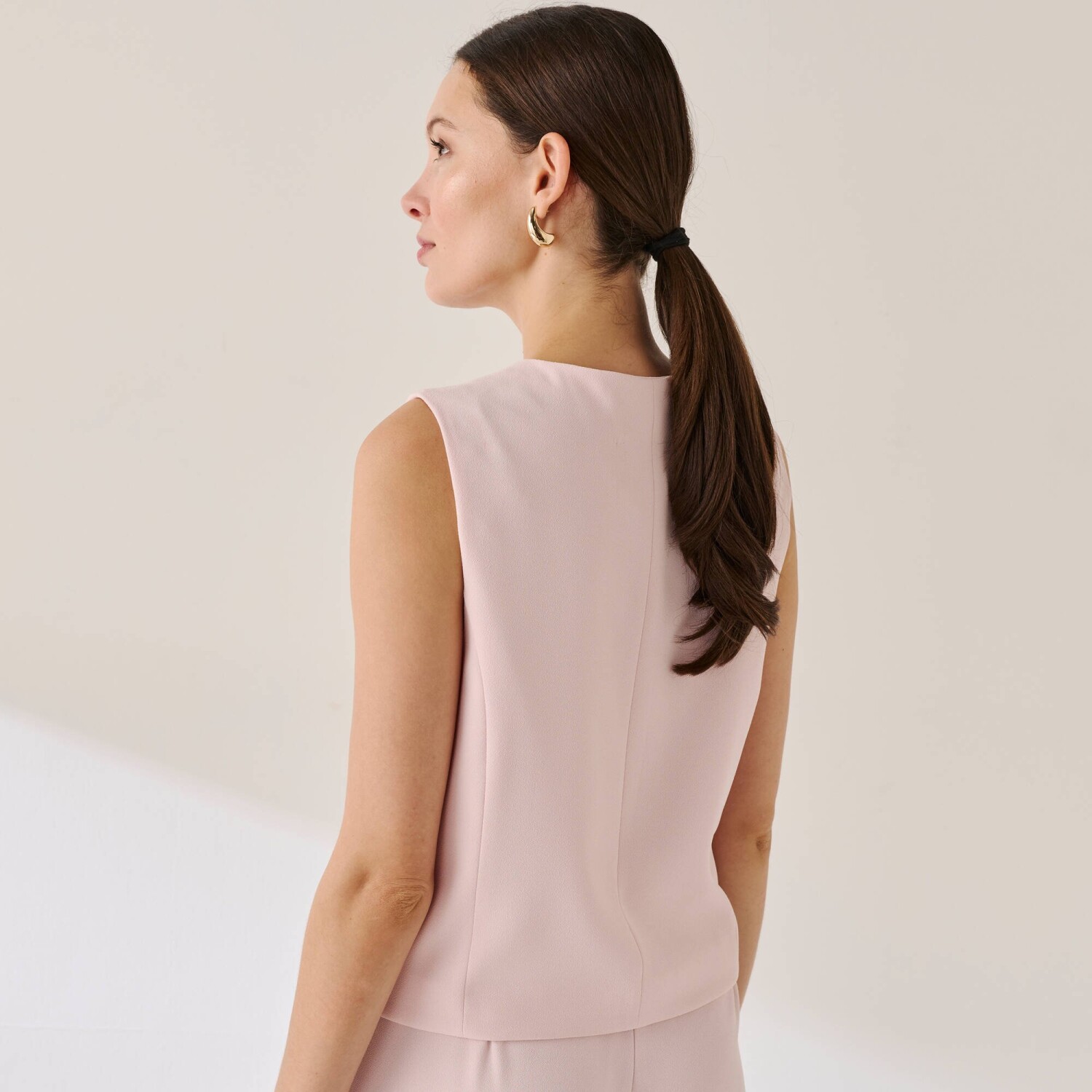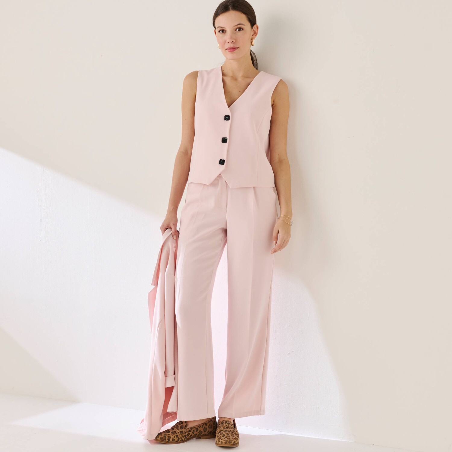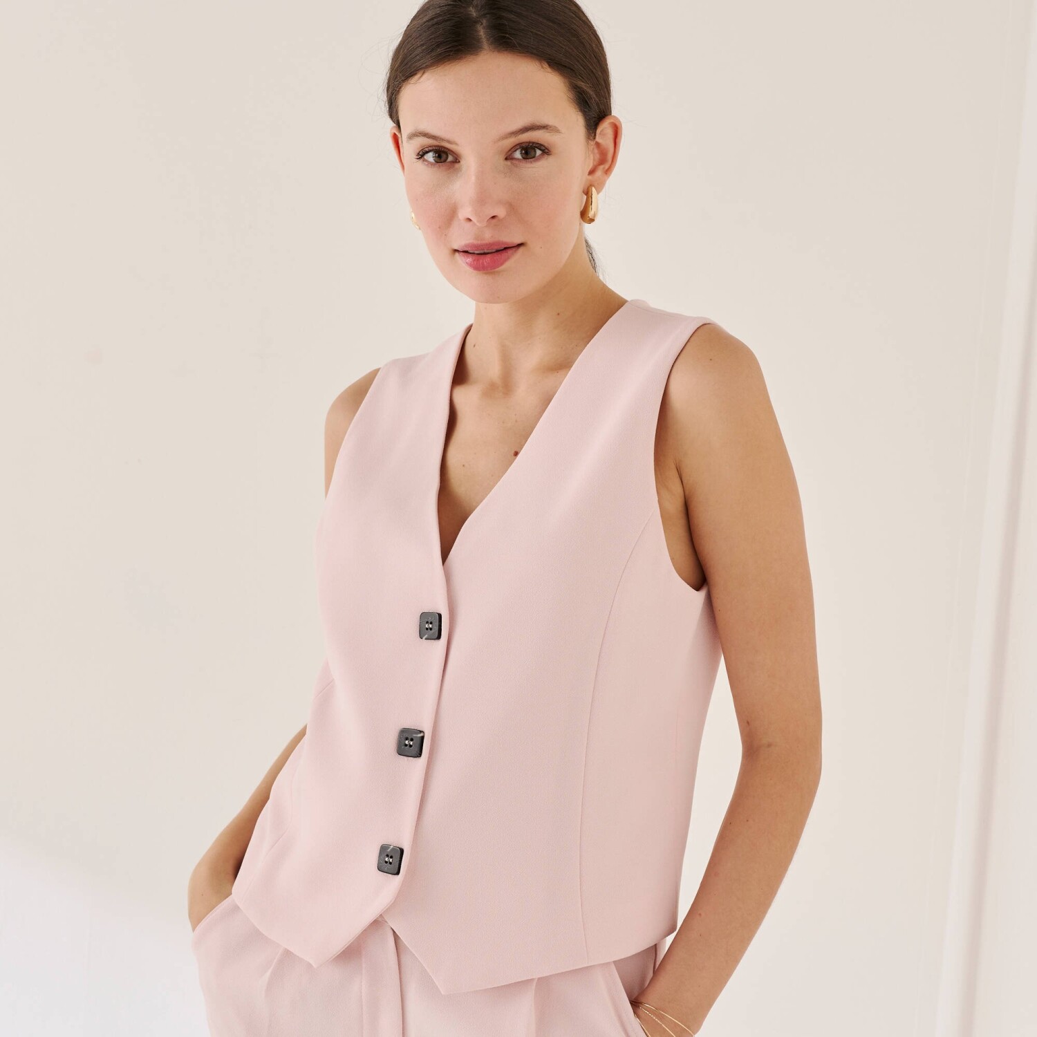 Módny kúsok na dohľad! Venujte pozornosť originálnej veste v mestskom štýle, ktorá sa postará o nenútený kostýmový vzhľad. Vzdušný splývavý krep. Rovný strih. Výstrih do V. Zapínanie na 3 gombíky. Predný diel v princesovom strihu. Vzadu prestrih. Celopodšívka. Možno prať v práčke.