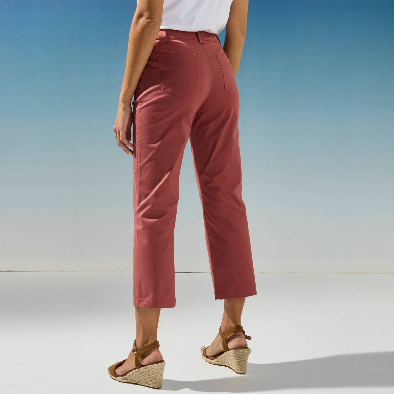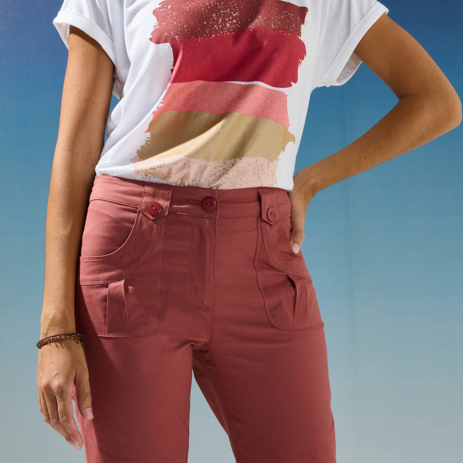 7/8 široké nohavice vynikajú madeirovou výšivkou a stavajú na štýlový boho vzhľad. Z ľahučkej bavlny ideálnej na leto. 7/8 dĺžka. Rovný široký strih. Vysoký pás. Vpredu tvarovaný pás, vzadu pružný. 2 klinové vrecká. Na koncoch nohavíc madeira. Možno prať v práčke.