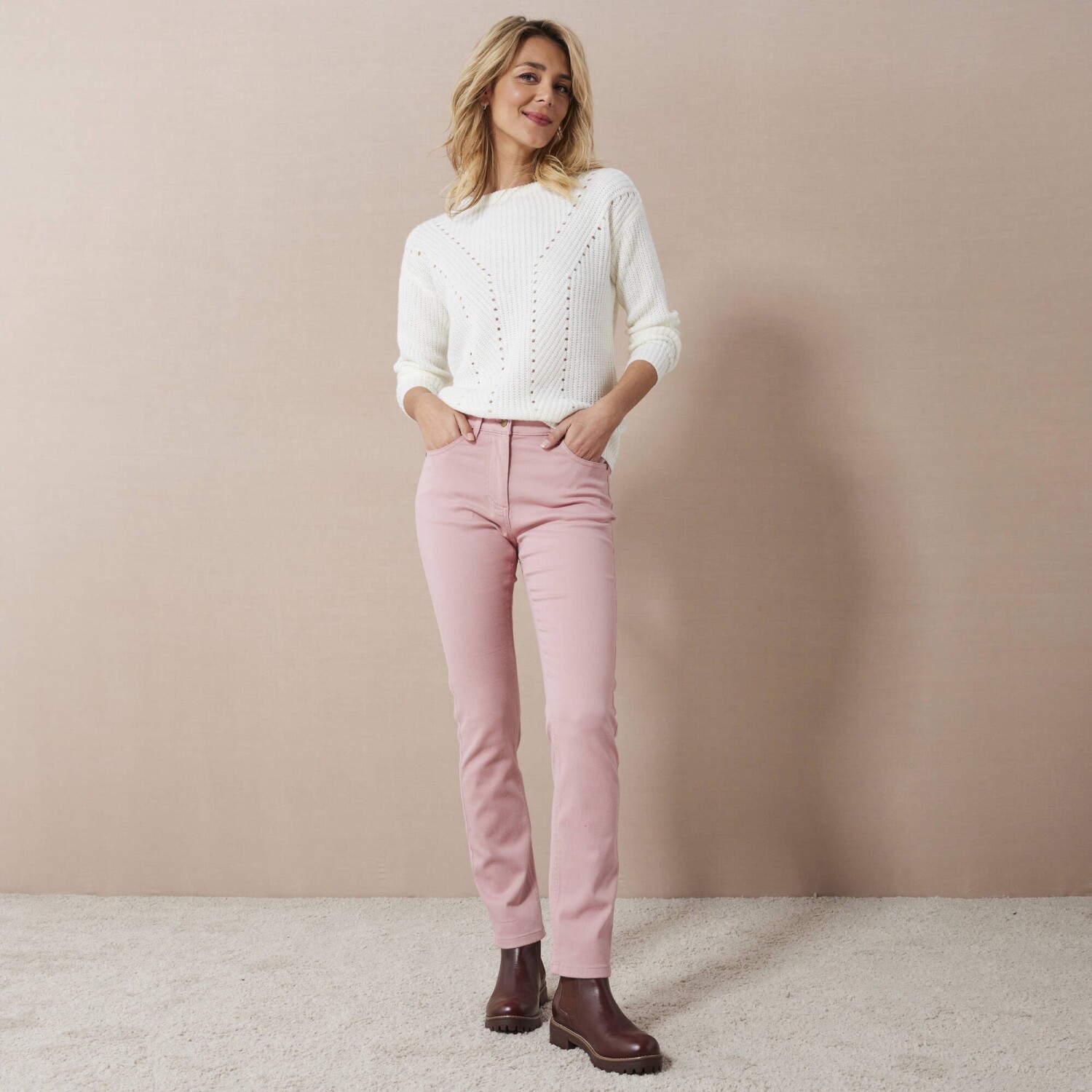 Tieto nohavice vedia, ako sa zapáčiť! Bežná výška pásu. Vrúbkovaný pás s vnútornou plochou gumou. V páse šnúrka na zaviazanie. Vpredu 2 vrecká, vzadu 2 falošné vrecká s paspulou. Vpredu 2 zámiky. Vrúbkované konce nohavíc. Zo sviežej zmesi bavlny a ľanu. Možno prať v práčke.