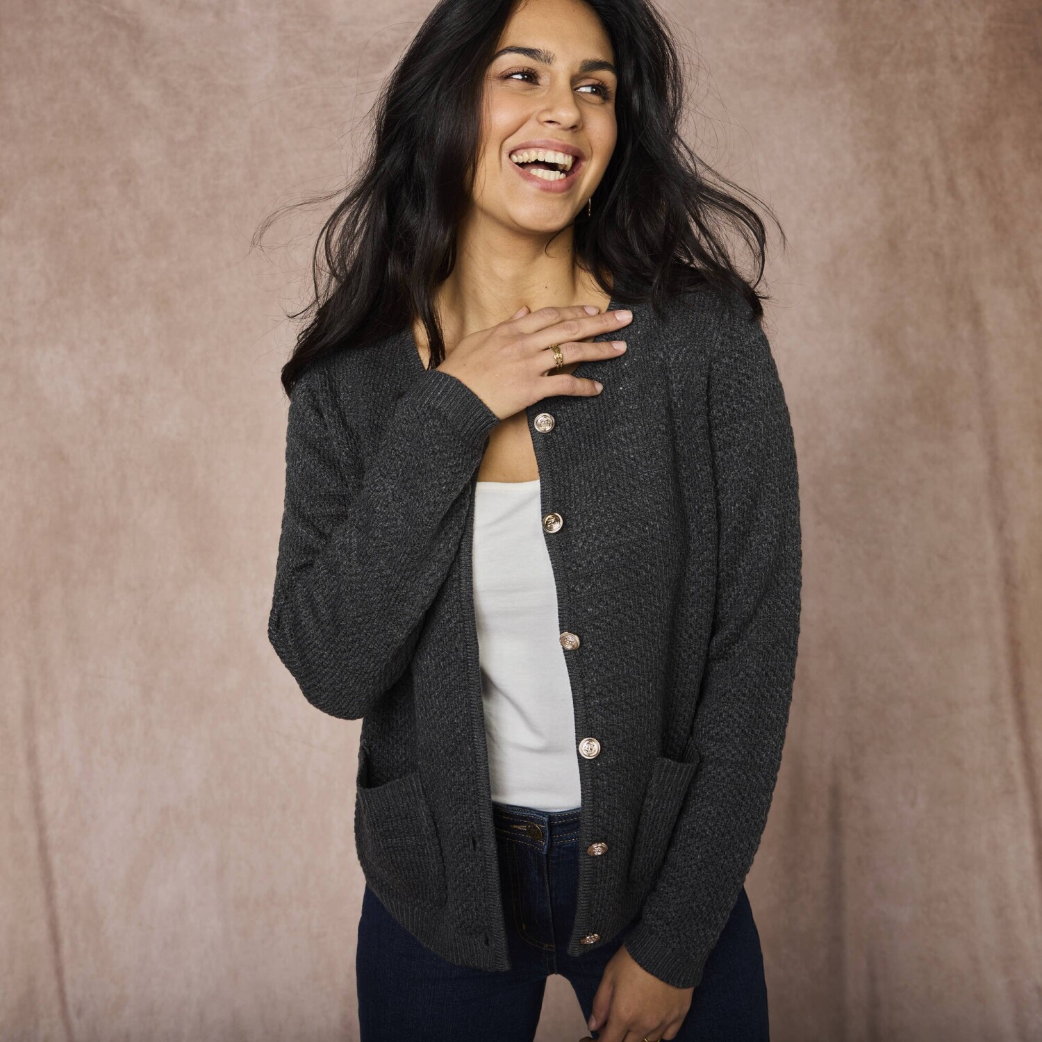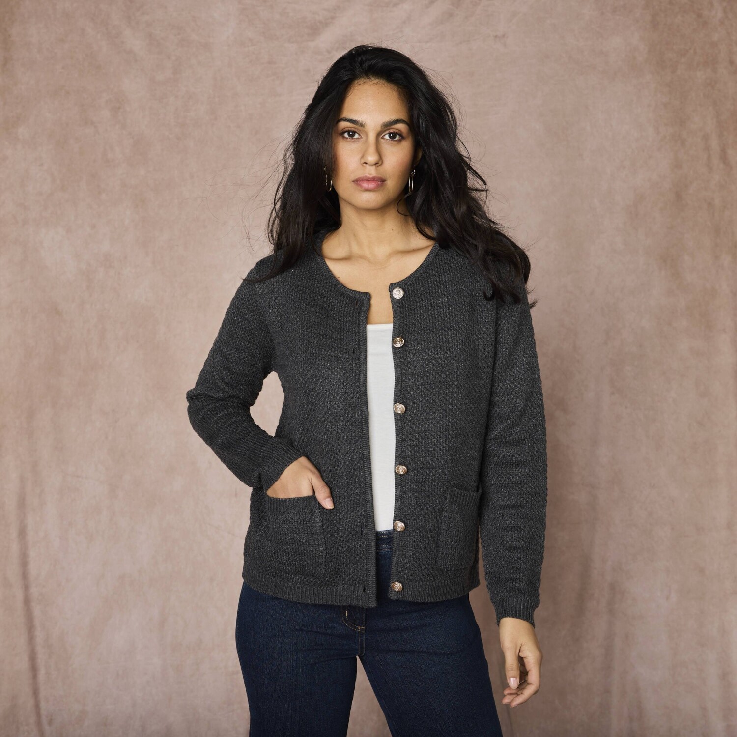 Sveter na zips v štýle bundy si nás získal svojou mäkkosťou. Jemný úplet. Golier. Vpredu zips. Dlhé rukávy. 2 šikmé vrecká vpredu. Rovný dolný lem. Možno prať v práčke.