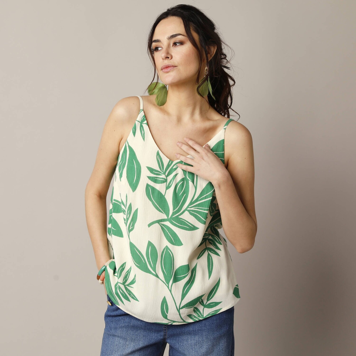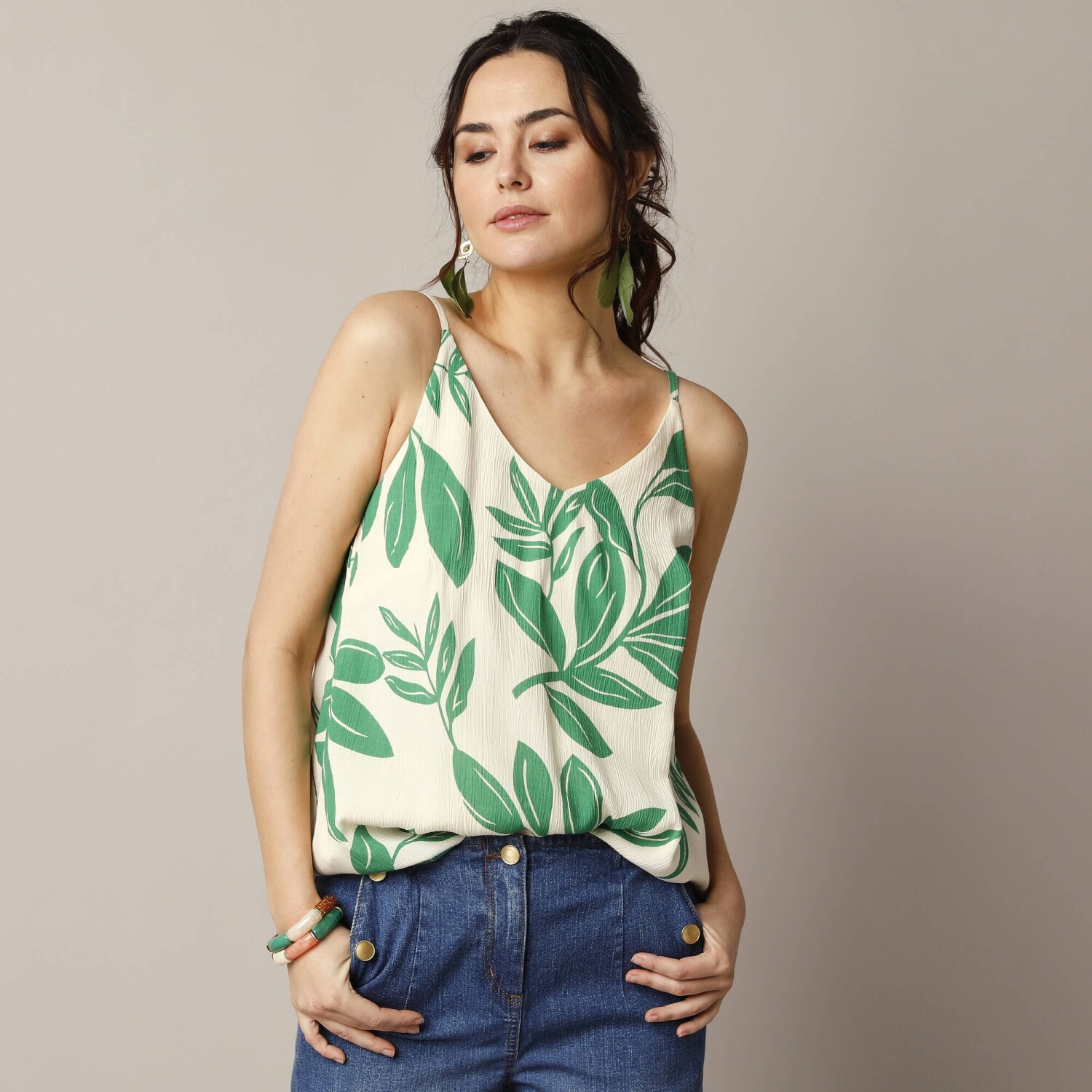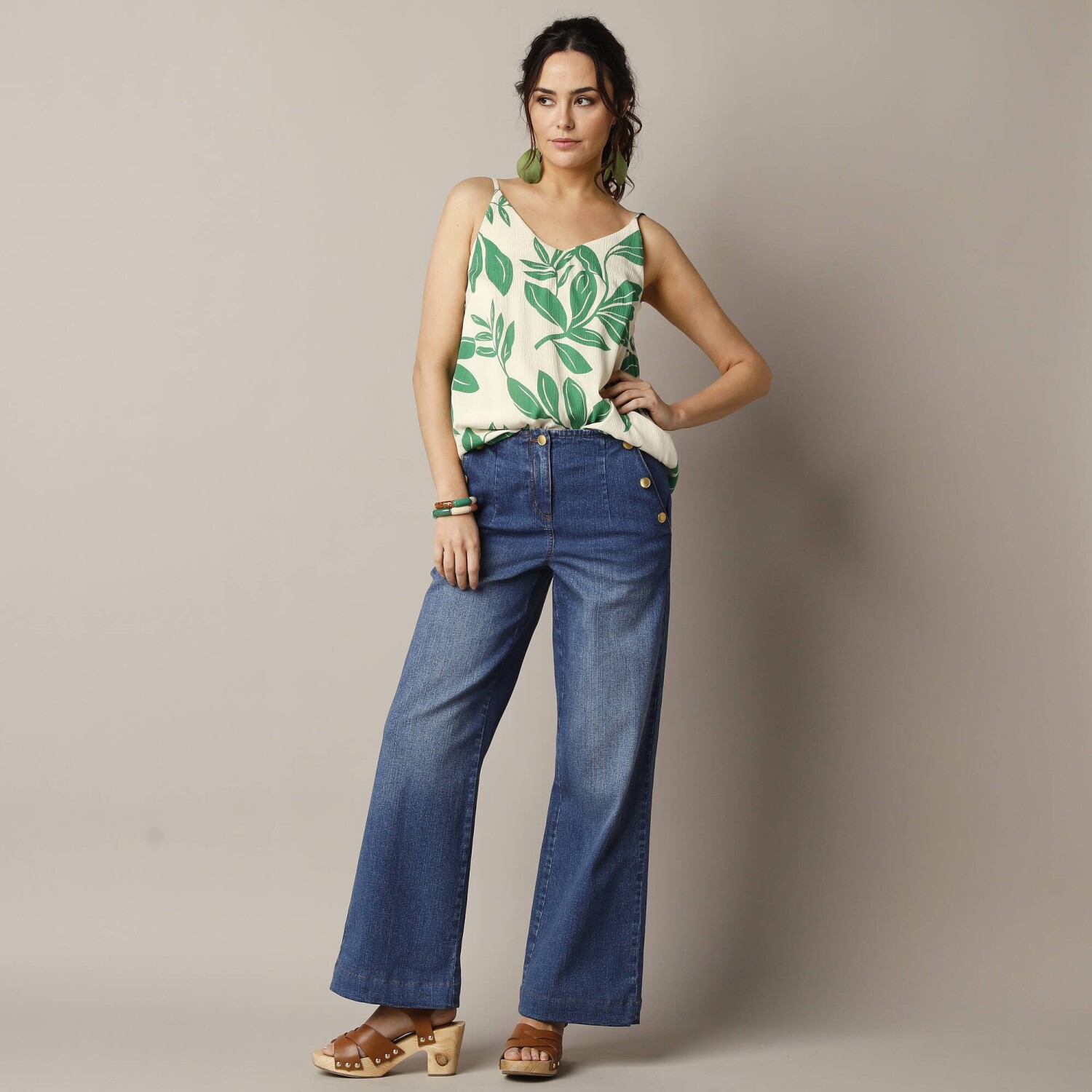 Jednofarebný top s macramé výstrihom do V oceníte na rôzne príležitosti. Vzdušný úplet, ľahká údržba. Výstrih do V lemovaný macramé. Léga s 3 gombíkmi s kokosovým vzhľadom. Rovný spodný lem. Možno prať v práčke.