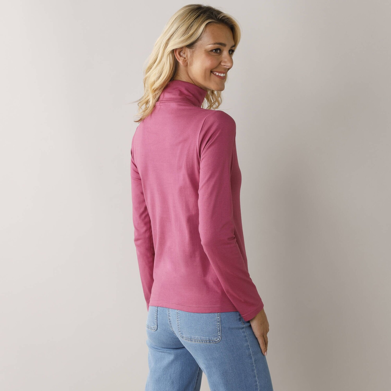 Základný model šatníka: strečové rolákové tričko z jemného úpletu, ktorý sa nosí ako druhá koža. Strečová bavlna s ľahkou údržbou a nosením. Stojačik. Dlhé rukávy. Rovný dolný lem. Standard 100 by Oeko-Tex (n° CQ 1216/3). Táto známka označuje textilné výrobky, ktoré boli podrobené laboratórnym testom na široké spektrum škodlivých látok a výrobok je bezpečný nad rámec platných noriem. Možno prať v práčke.