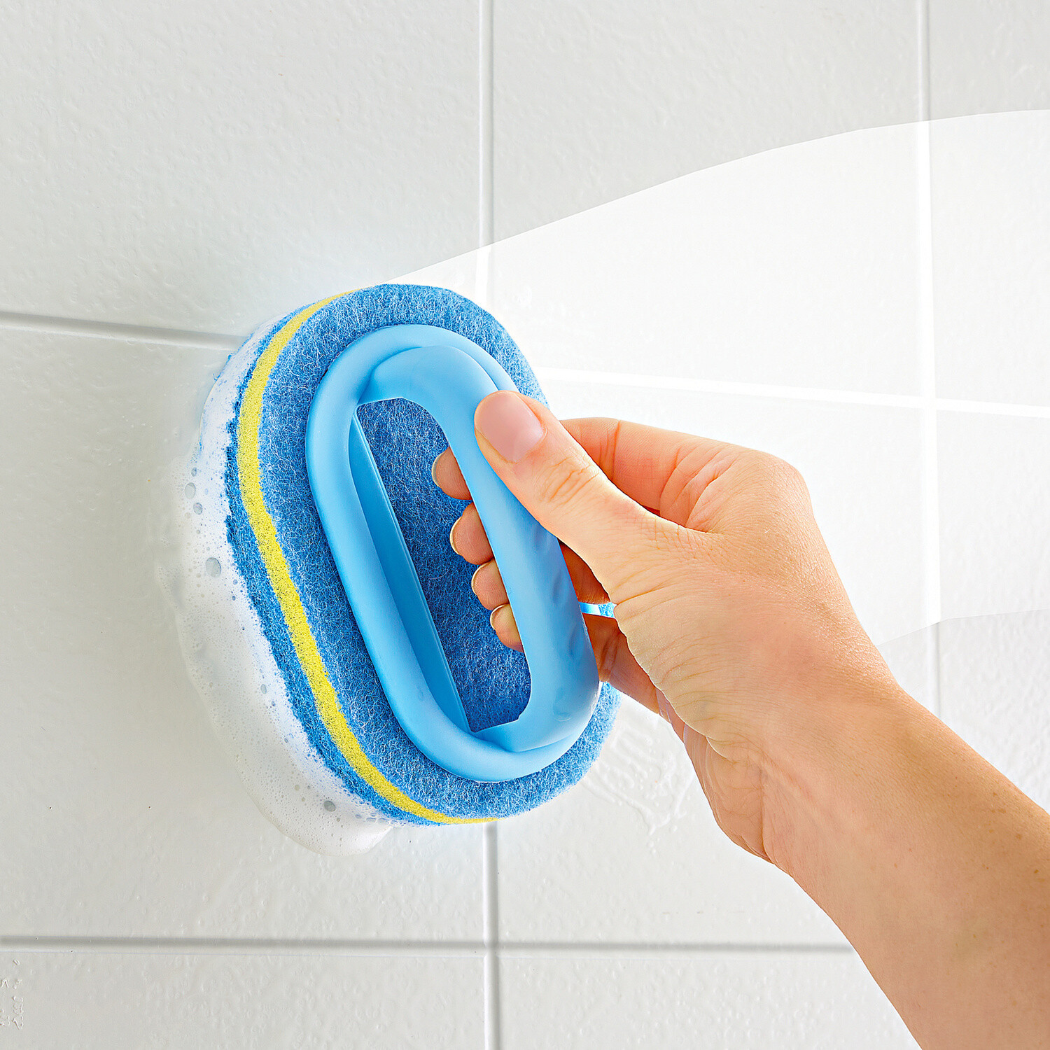 Aby kuchyňa a kúpeľňa rýchlo zažiarila: dôkladné drhnutie vďaka dvojvrstvovej špongii s protišmykovou rukoväťou pre bezpečné uchopenie. Šetrná k rukám a umožňujúca hĺbkové čistenie. Extra veľká a účinná na veľké plochy.