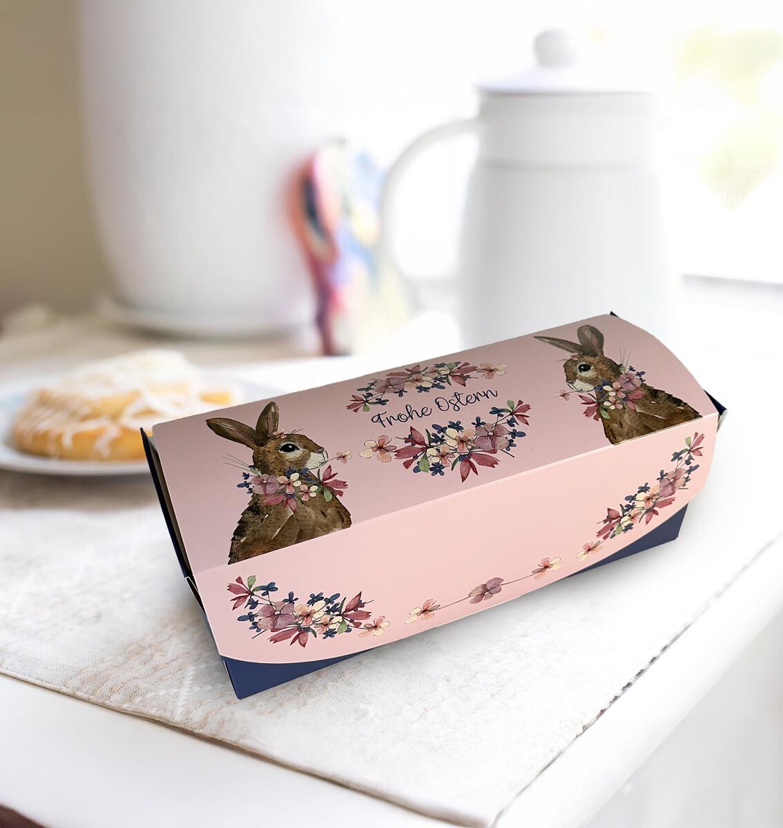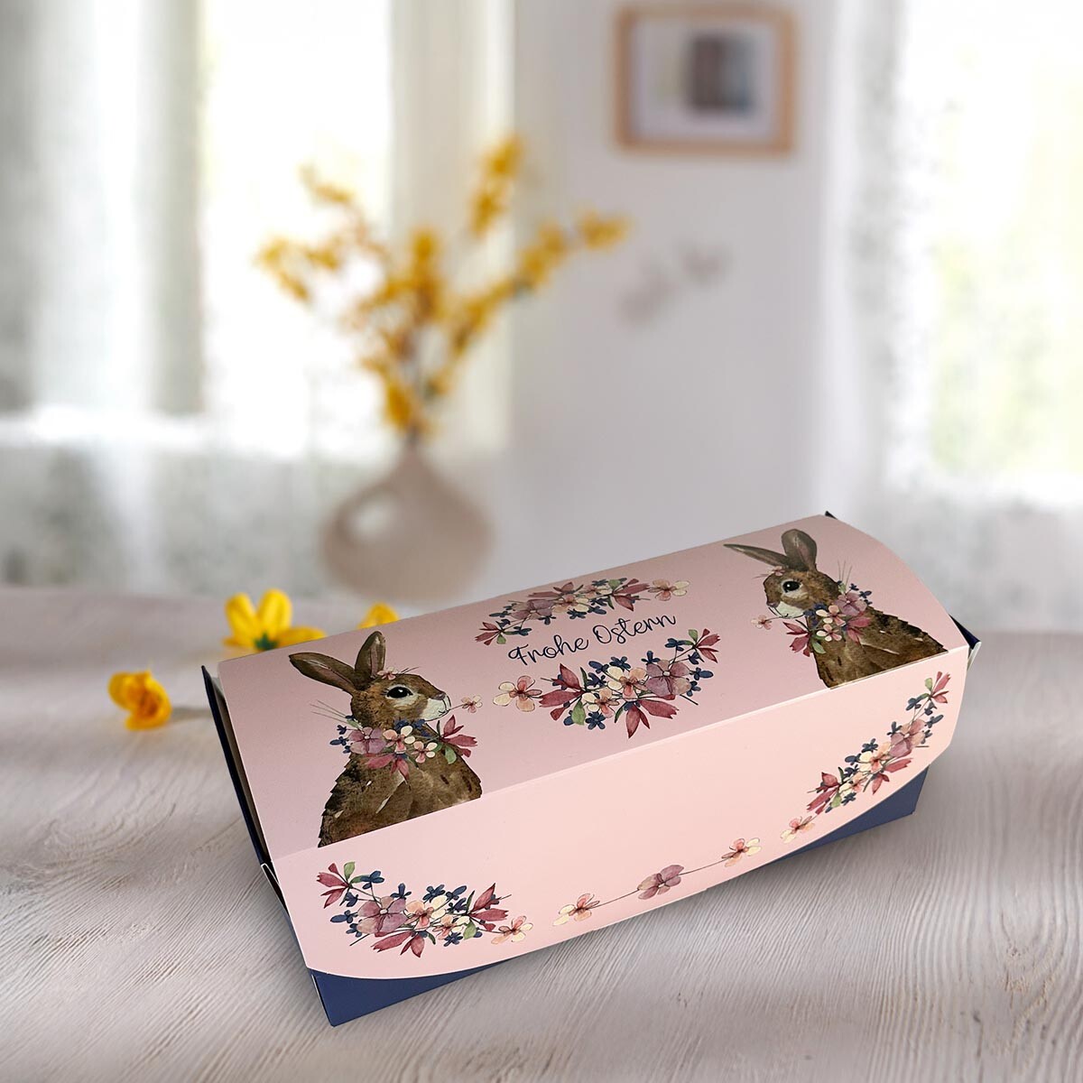 Prihlásenie RegistrovaťKrásne do nej zabalíte muffiny, tortičky, zákusky. Na bezpečnú prepravu a štýlovú prezentáciu. Škatuľa je 2dielna. Vnútorná časť má praktické úchyty, vonkajší obal zdobia veľkonočné motívy. Balenie obsahuje sadu 10 kusov. Materiál: papier. Rozmery: 27,5 x 11 x 10 cm.