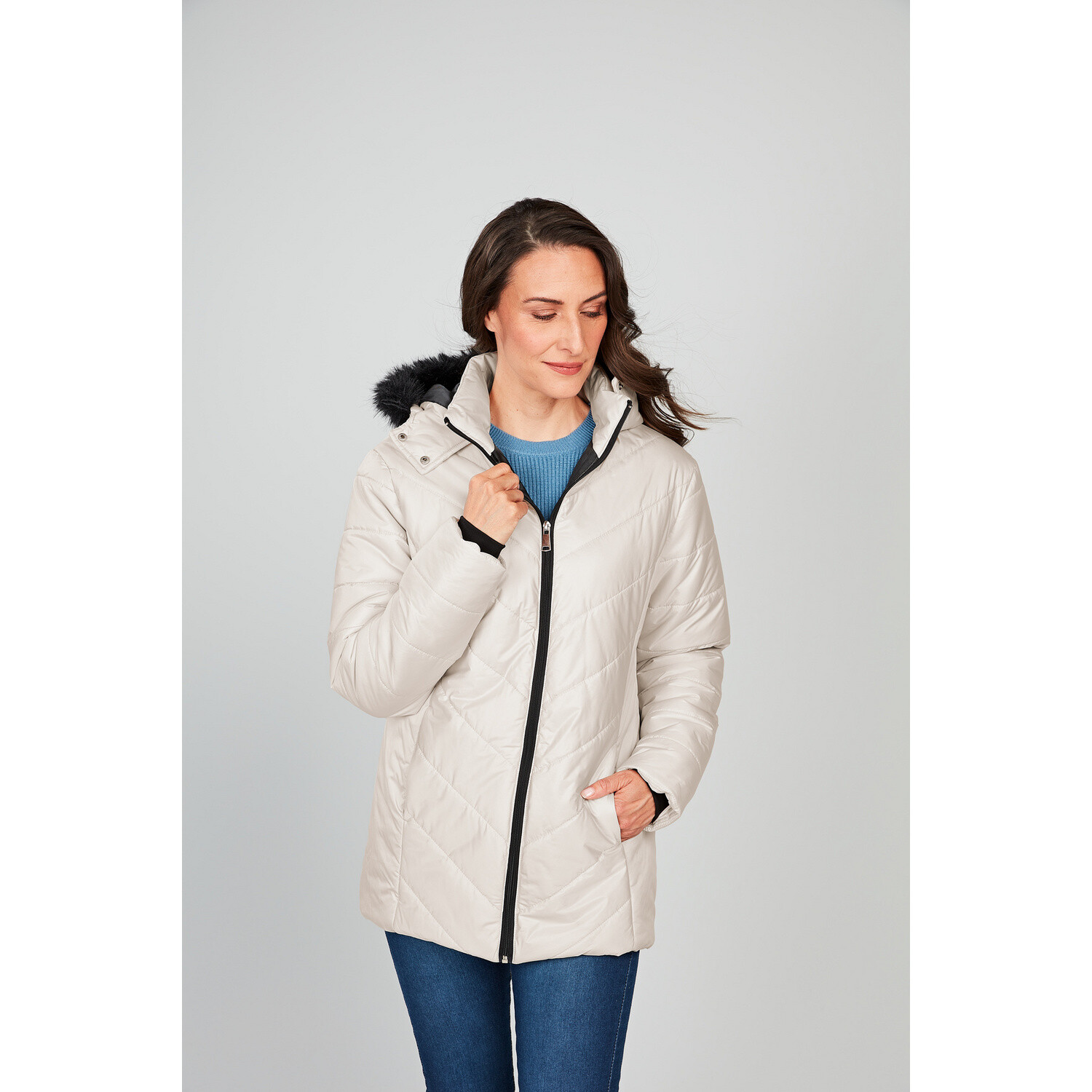 Zostaňte aj v chladnom ročnom období v teple a módne s touto elegantnou prešívanou bundou vo farbách smotanovej a vínovej. Ľahký, ale napriek tomu odolný materiál zaisťuje príjemné teplo, zatiaľ čo kvalitné spracovanie zaručuje dlhú životnosť. Výrazným prvkom je kapucňa s čiernym kožúškom, ktorá Vás nielen ochráni pred vetrom a chladom, ale taktiež pridá štýlový prvok. Tento kontrast farieb dáva Vašej bunde jedinečný a nezameniteľný vzhľad!